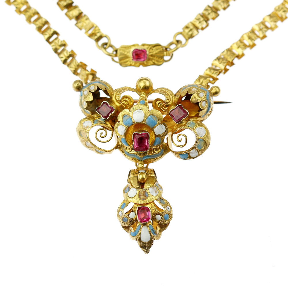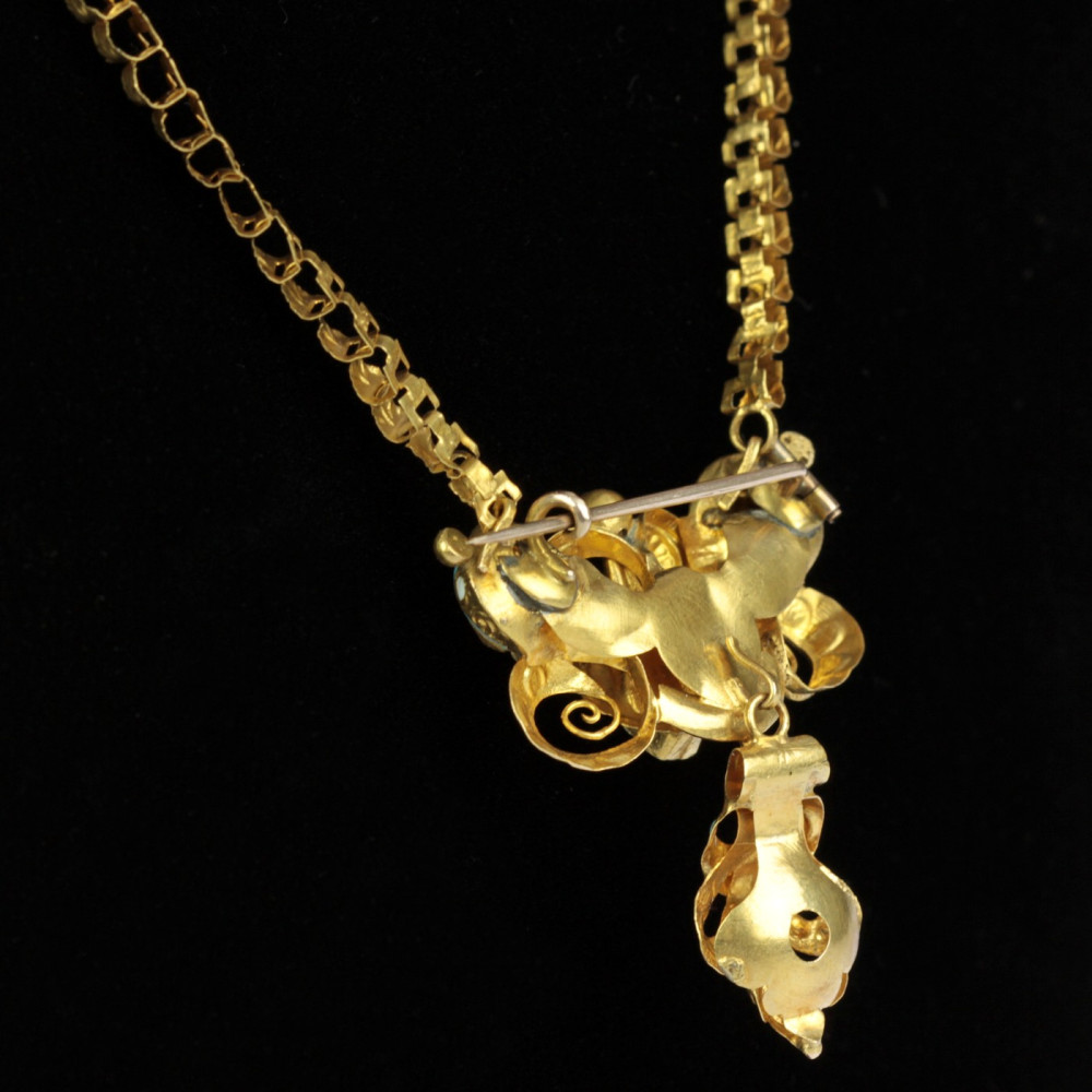 PRODÁNO - Zlatý náhrdelník/brož se smalty - druhé rokoko