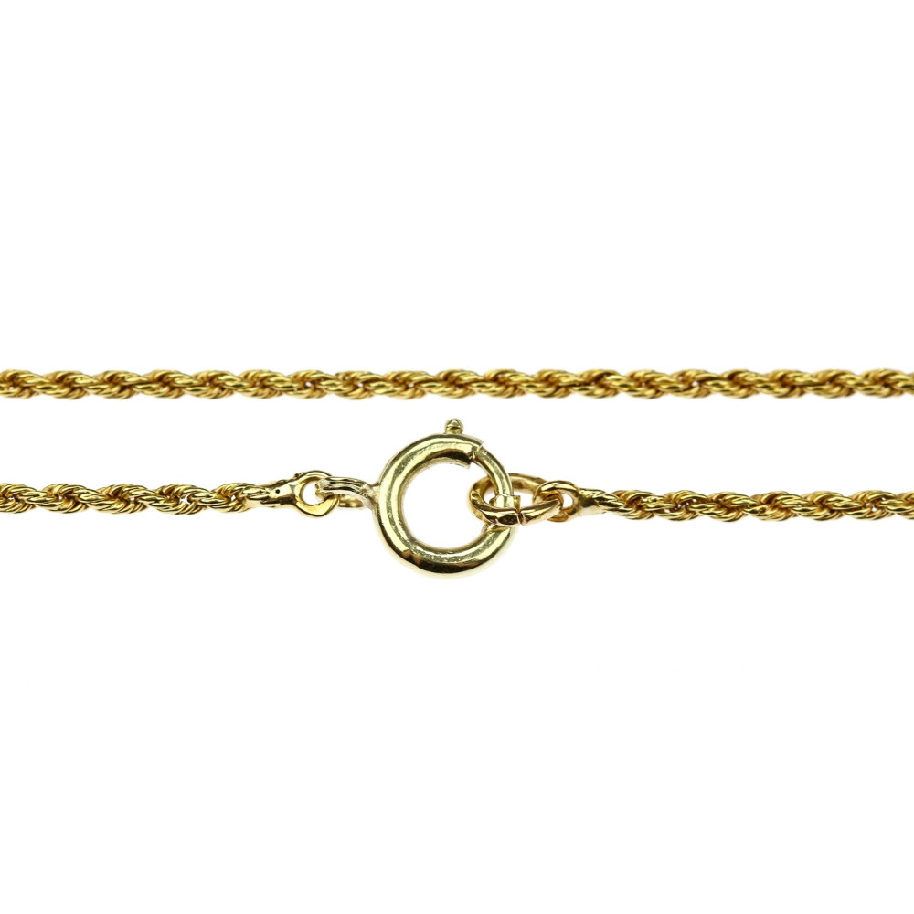 155 cm dlouhý řetízek typu "walis" vyrobený ze žlutého 14karátového zlata na území Rakouska-Uherska (s místem puncování ve Vídni).