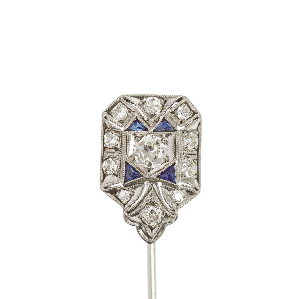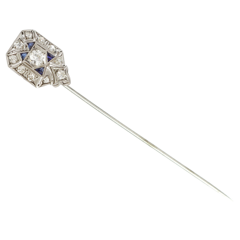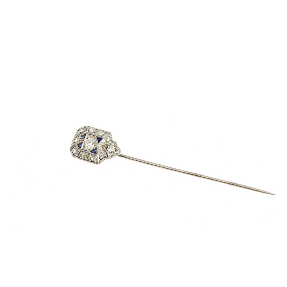 PRODÁNO - Art deco platinová jehlice s diamanty a syntetickými safíry