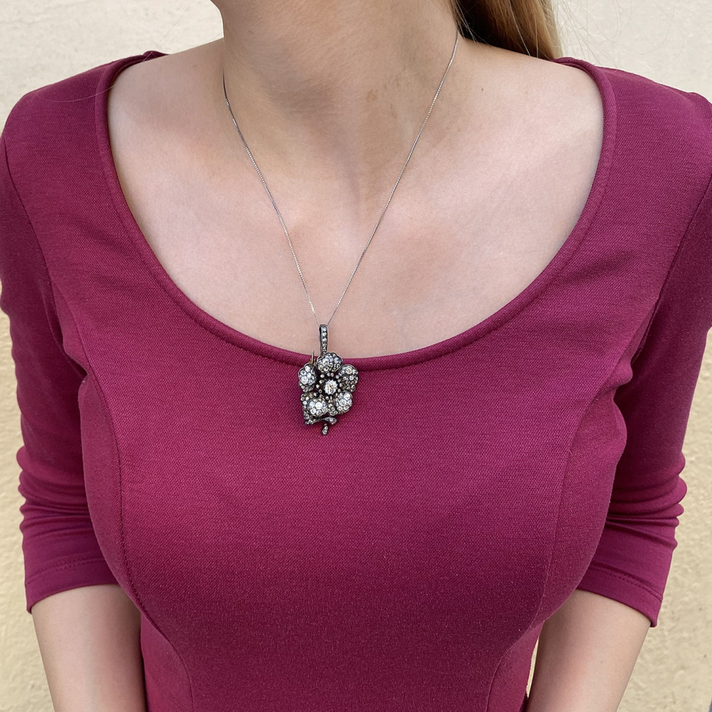 PRODÁNO - Květinová brož / přívěsek se starobrusnými diamanty