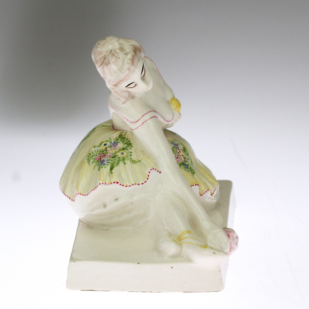 Těžítko ve tvaru půvabné sedící baletky z malované bílé fajánse původem z keramických dílen v Bechyni dle návrhu sochaře Jana Vítěslava Duška (1891 - 1966). Soška je zachycená již v dobovém katalogu z roku 1921 (viz fotografie). Zachováno ve velmi dobrém stavu. Značeno "Made in Czechoslovakia", "Bechyně".
