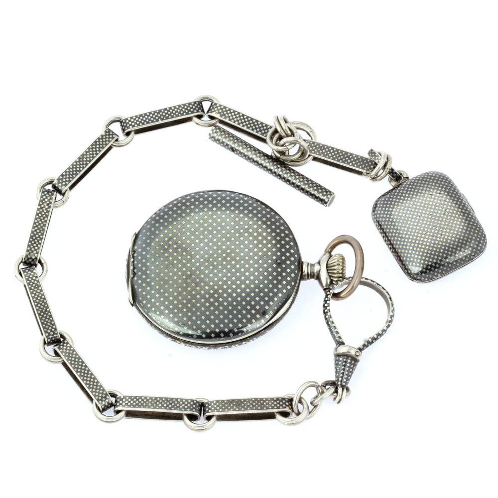 Stříbrné kapesní hodinky a šatlén s medailonkem
