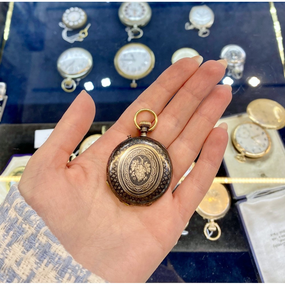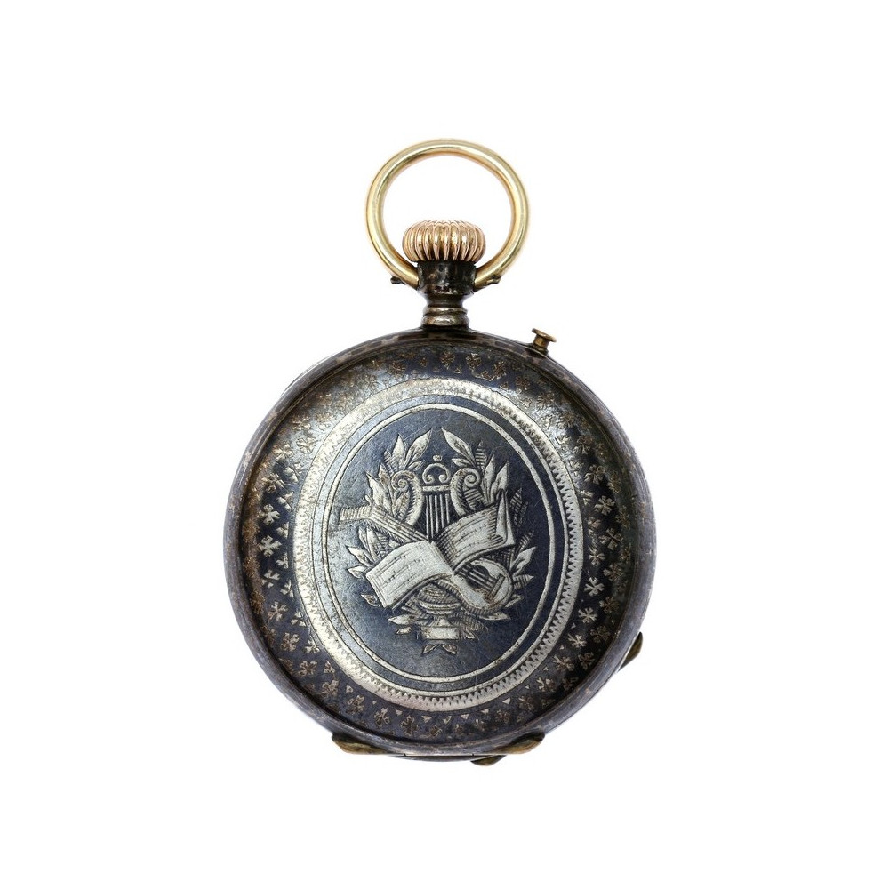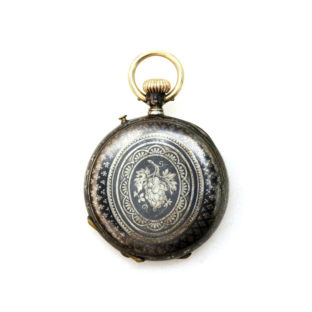 Kapesní hodinky ze stříbra a zlata zdobené tulou