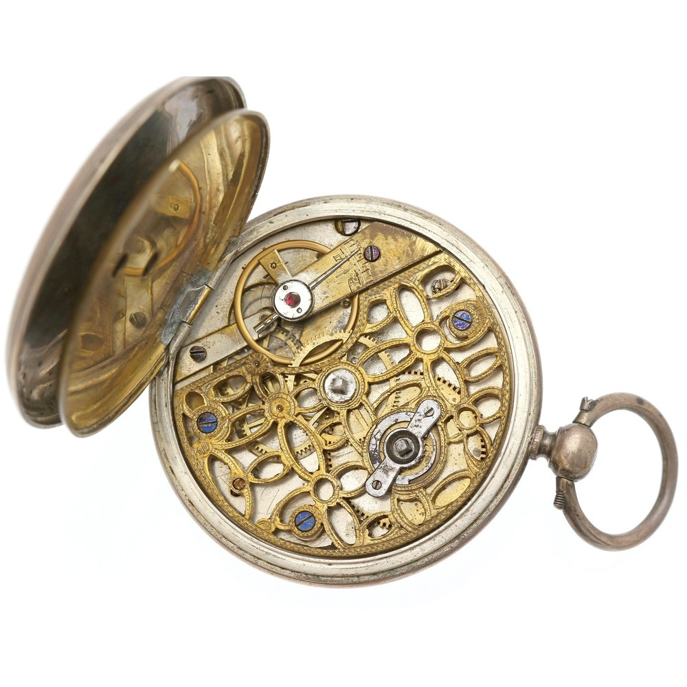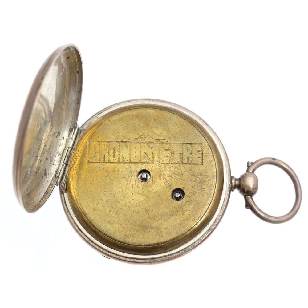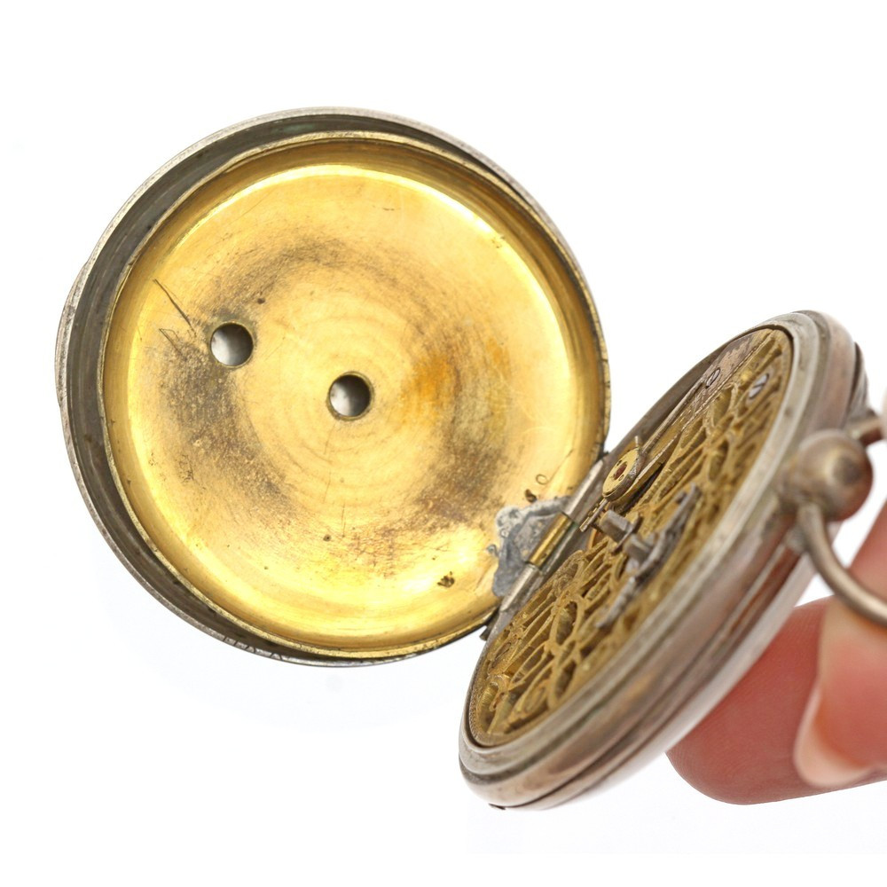 Dvouplášťové kapesní hodinky mají vnější pouzdro zhotovené ze stříbra, vnitřní prachový plášť je z obecného kovu. Ciferník disponuje římskými i arabskými číslicemi, vteřinová ručička je umístěna samostatně. Gravírovaný motiv na zadním plášti je při okrajích částečně setřelý. Unikátně zpracovaná krycí část hodinkového stroje je dekorativně vyřezaná.