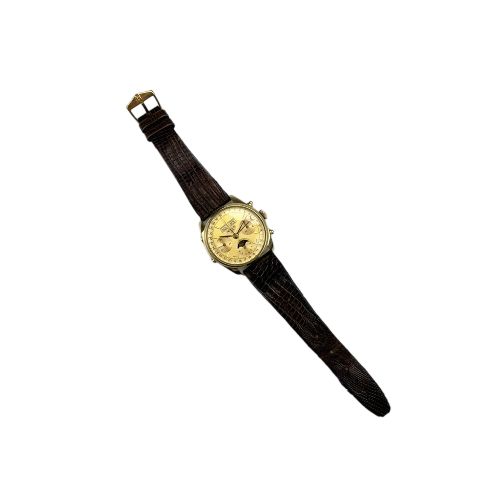 Srdcem hodinek je manuálně natahovaný strojek od Valjoux, konkrétně legendární kalibr 88. Ten nabízí 12hodinový chronograf, kompletní kalendář (den, datum a měsíc) a elegantní ukazatel fáze měsíce. Tato kombinace komplikací dodává modelu nejen technickou hodnotu, ale i vizuální hloubku, která potěší každého milovníka mechanických hodinek.