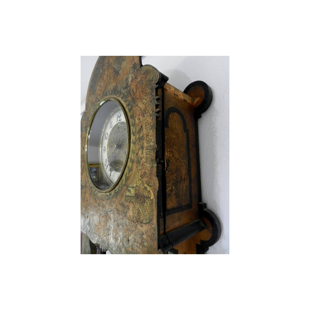 Nástěnné hodiny s arabskými číslicemi a bohatým malováním na motivy času a přírody.