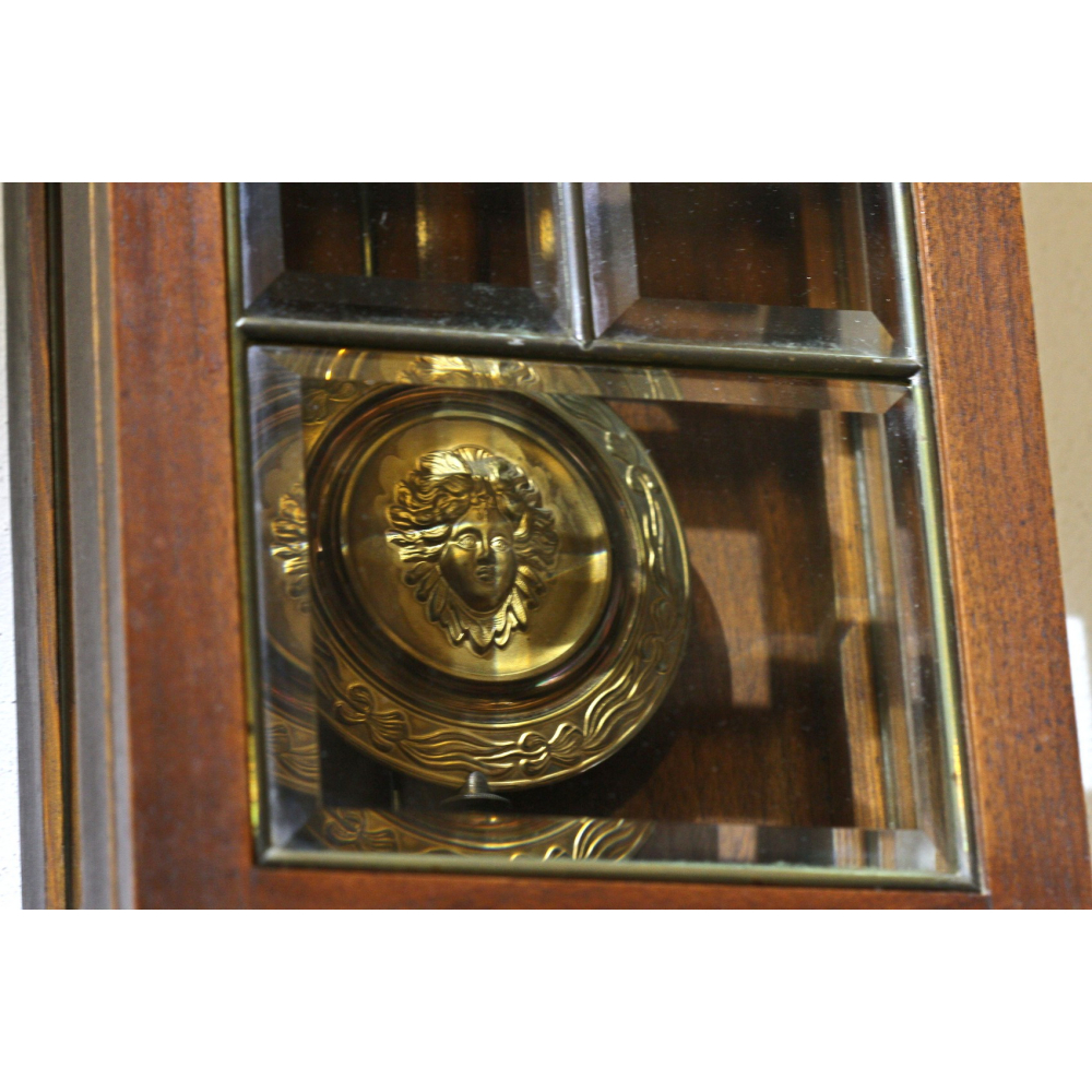 Nástěnné kyvadlové hodiny tzv. pendlovky. Mosazný ciferník se secesním zdobením má římské číslice. Bití v půl a v celou. Hodiny pochází z období pozdní secese.
