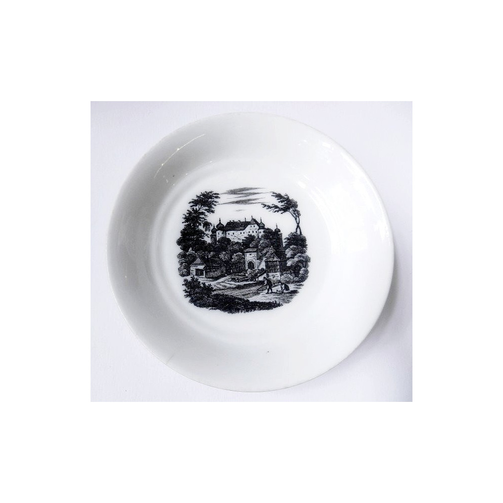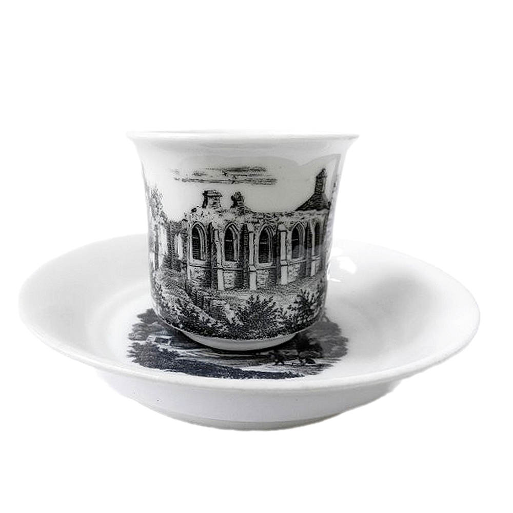Šálek s podšálkem vyrobený v Březové mezi lety 1846 - 1853 pod vedením Christiana Fischera. Zdobeno měditiskem.