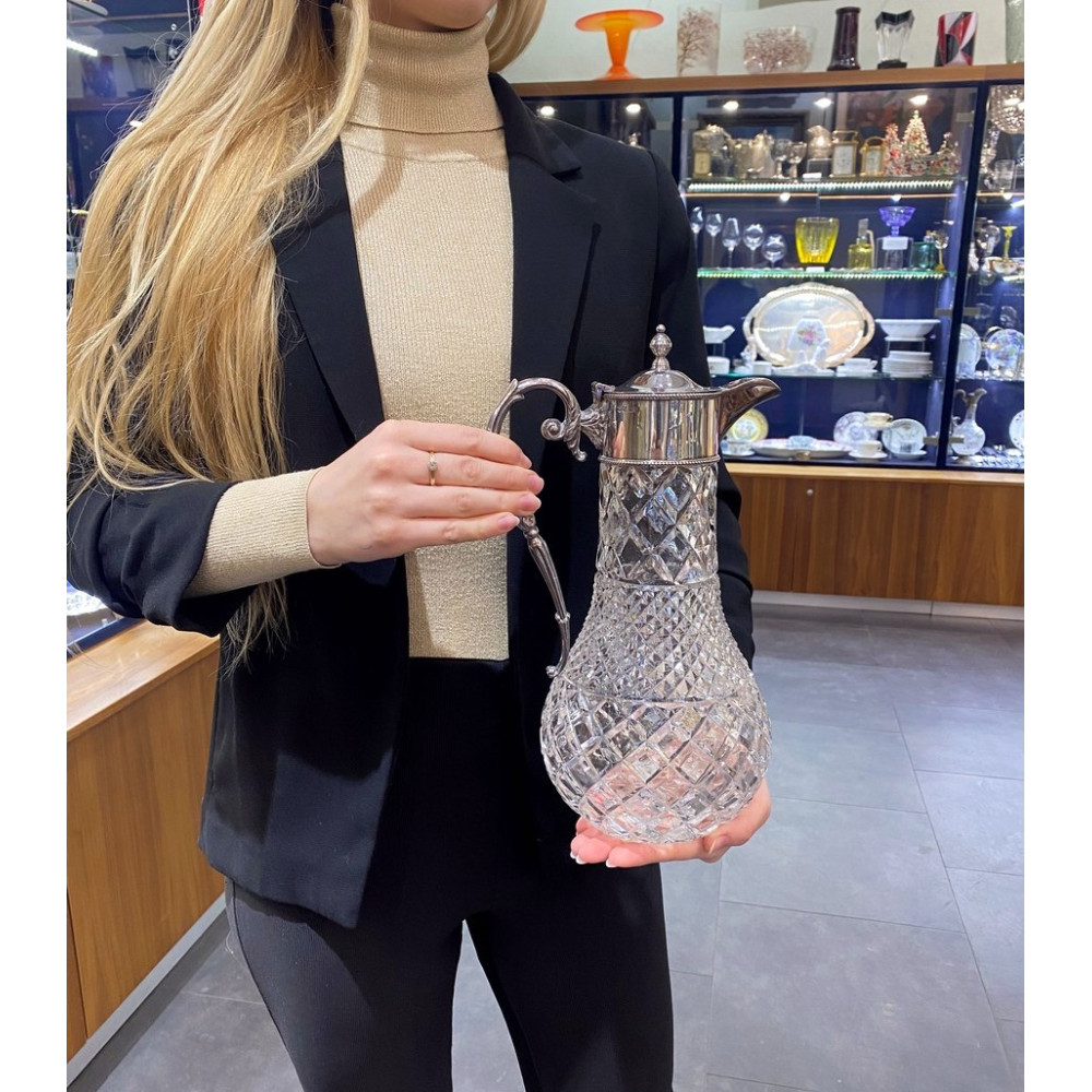 Celková váha karaf je více než 4,6 kg a to zejména použitím velké masy křišťálového skla. To zdobí bohatý broušený dekor, stříbrná montáž pak nese prvky historismu.