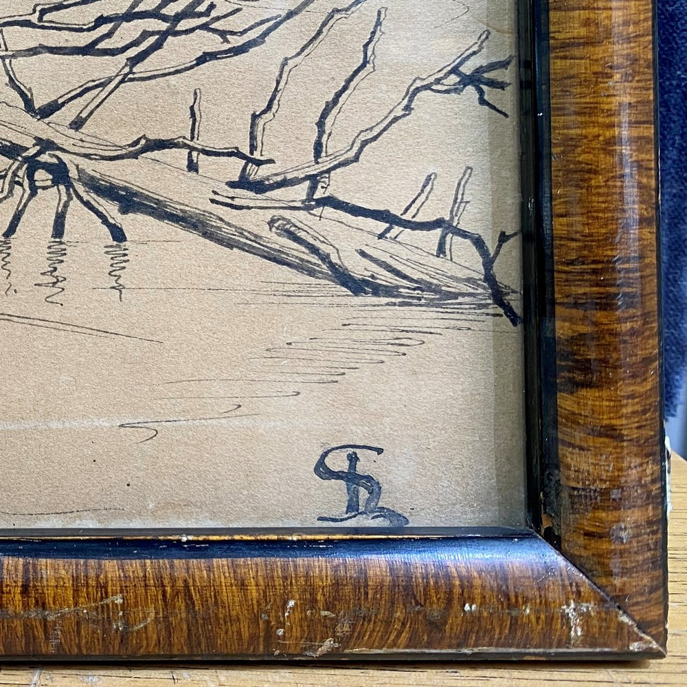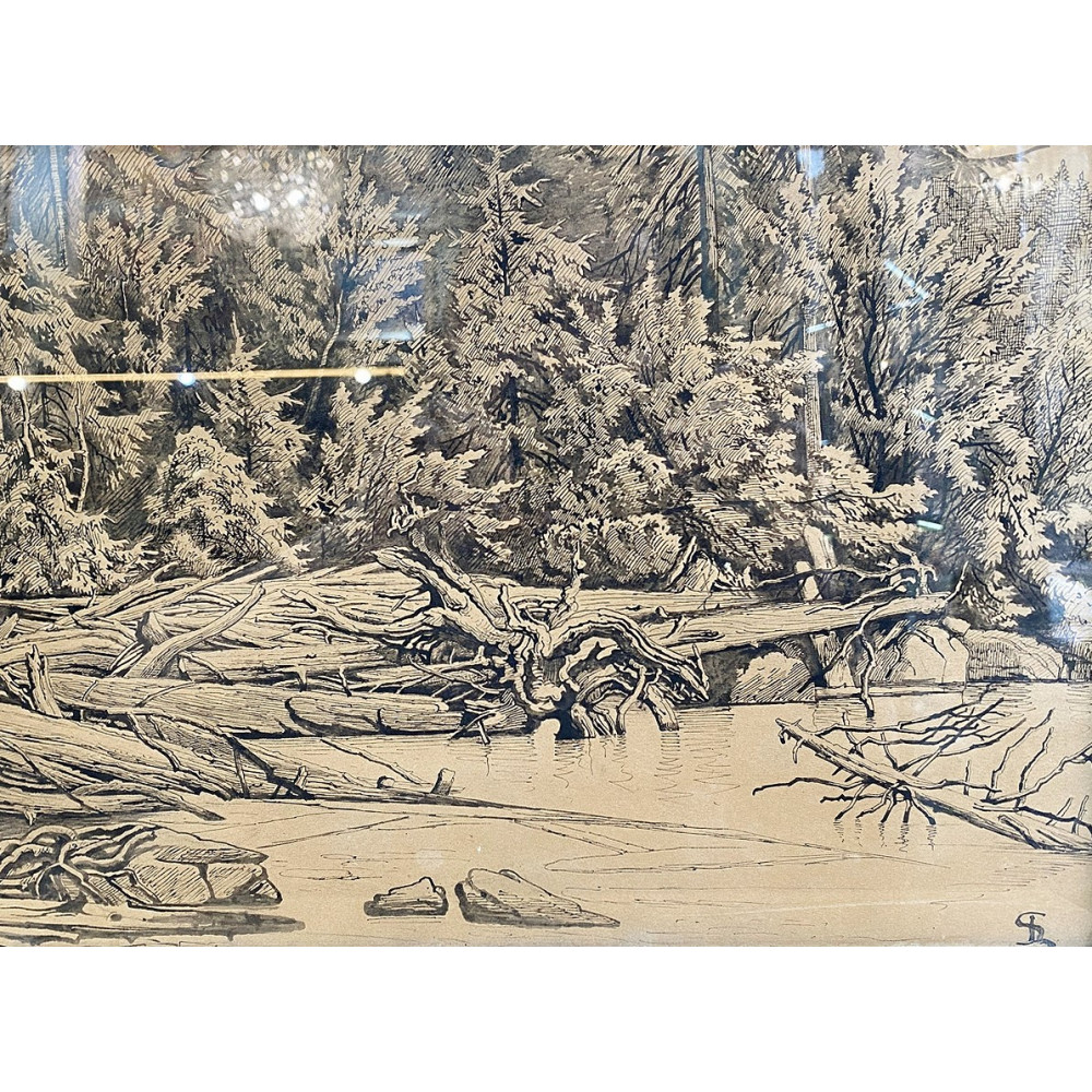 Studie – perokresba lesa při Černém jezeře na Šumavě, zaznamenaná roku 1887 na dvojlistu ze skicáře českého krajináře a naturalisty Leopolda Stephana (1826–1890). Jde o bezprostřední terénní záznam šumavské přírody se zachycením napadaných kmenů, kořenů, skal a křovin, v duchu soudobého studia přírody in situ, jak jej v té době prosazovala Mařákova škola. Dílo je signováno vpravo dole a ze zadní strany označeno štítkem. Rámováno.
