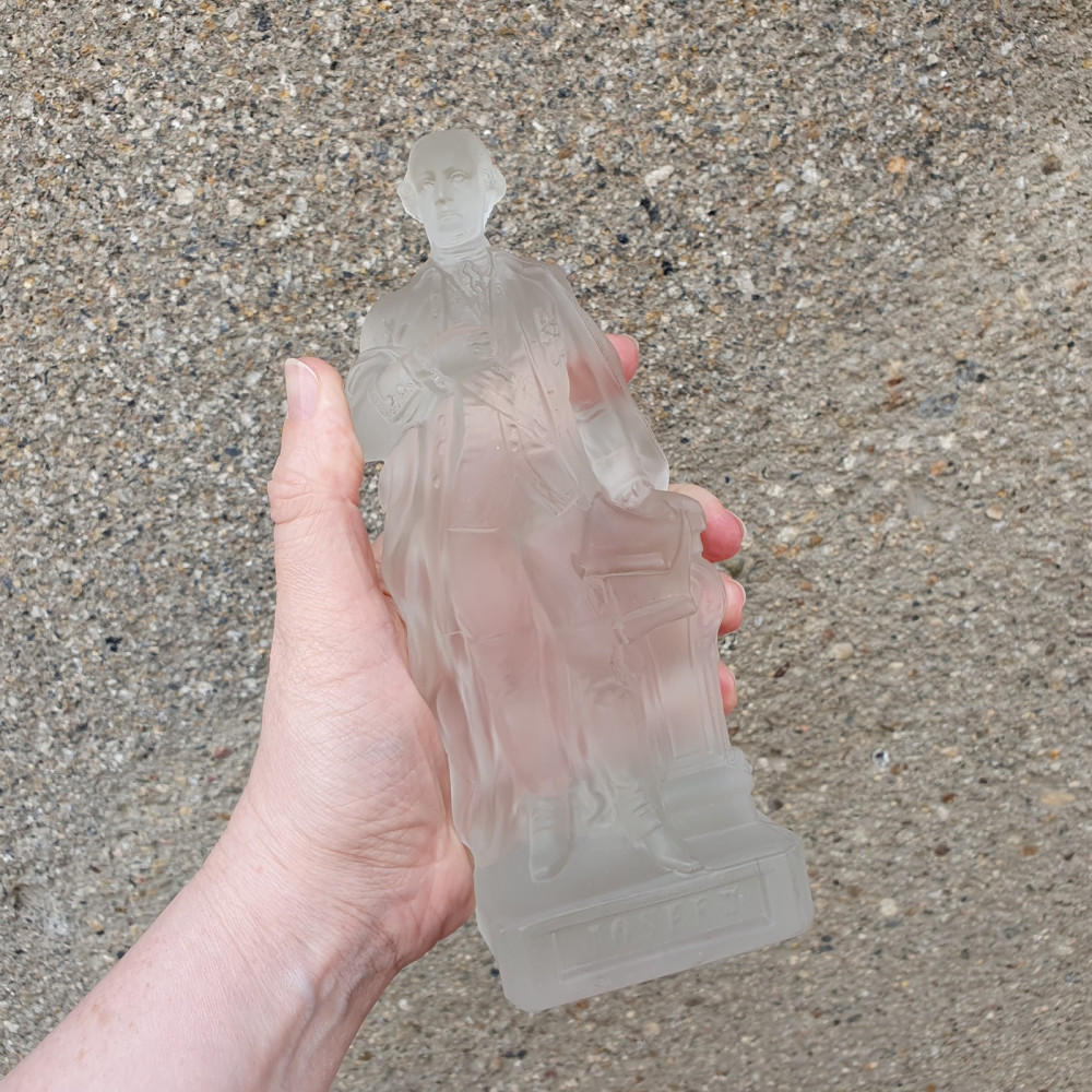 Plastika z bezbarvého matovaného skla zobrazuje císaře Josefa II. Pochází ze sklárny Josefa Riedela v Dolním Polubném, vyrobeno po roce 1880.