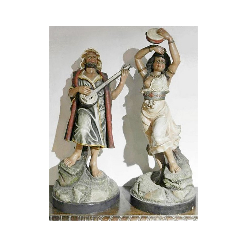 Dvě velké (72 cm) párové sochy muzikantů vytvořené z polychromované keramiky. Pravděpodobně vyrobeno v továrně na siderolitovou keramiku Johanna Maresche a jeho syna Ferdinanda (oficiální název Johann Maresch Thon- und Stein- gutwaren fabric in Aussig nebo Johann Maresch Siderolith und Terracotta Fabrik), která byla umístěna v Ústí nad Labem. Neznačeno.