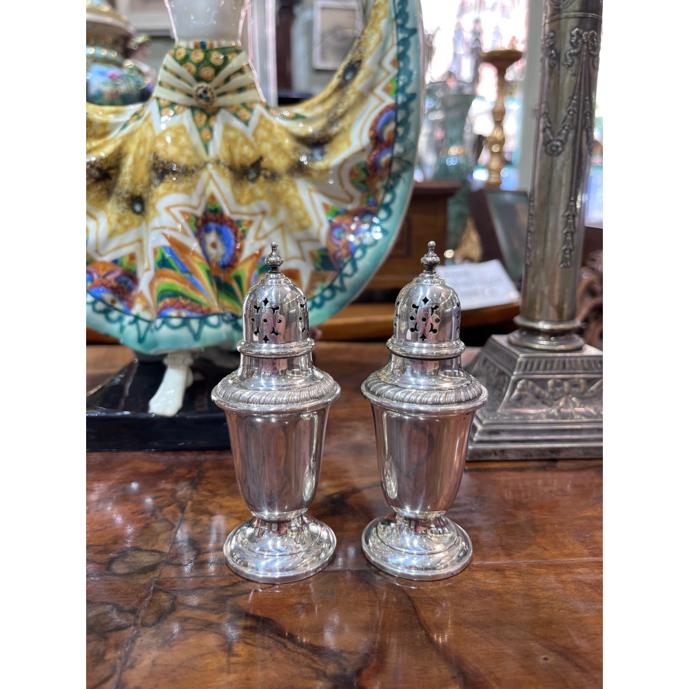 Slánka a pepřenka od americké stříbrnické firmy Gorham. Vyrobeno ze stříbra vyšší ryzosti (Ag 925/1000).