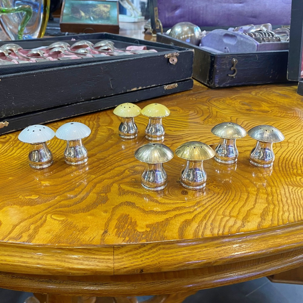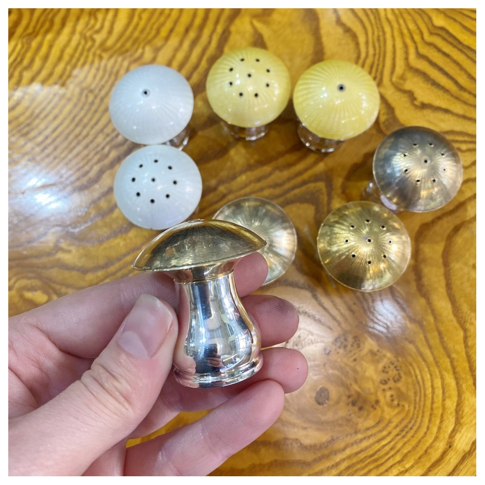 Stříbrná slánka a pepřenka ve tvaru houbiček byly vyrobeny dánskou stříbrnickou firmou ELA (Egon Lauridsen), která působila mezi lety 1936–1966. Kloboučky jsou zdobeny technikou gilošování a zlacení.
