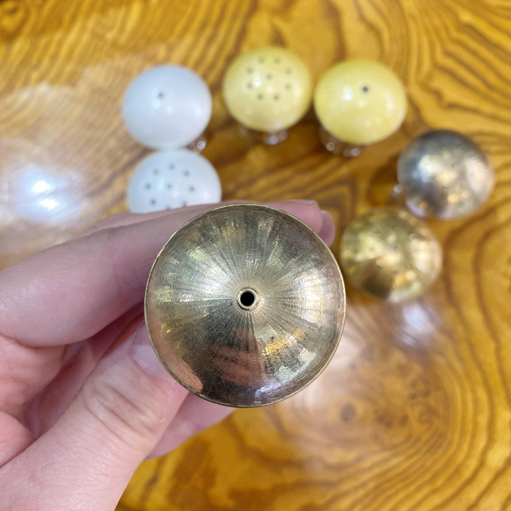 Malá slánka a pepřenka byly vyrobeny v 2. třetině 20. století ze sterlingového stříbra (925/1000). Ryzost kovu dokládá osvědčení z Puncovního úřadu.
