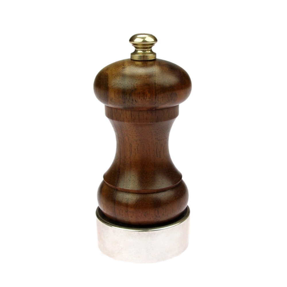 Dřevěný mlýnek na sůl se stříbrnou montáží. Vyroben byl roku 1986 pro kolekci "Peter Piper" anglickou firmou Park Green & Co., zaměřující se na produkci mlýnků na sůl a pepř. Puncováno v Londýně.