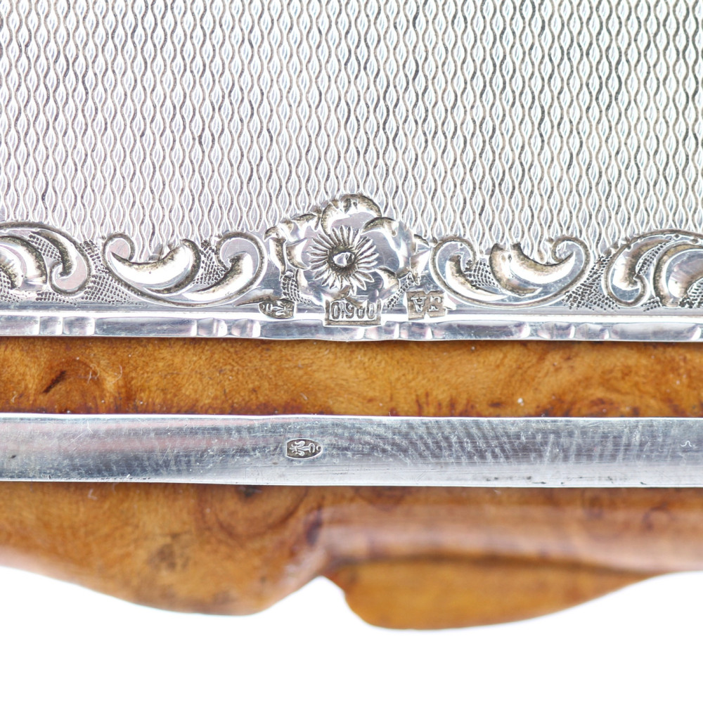 Dóza s víčkem na pudr vyrobená z čirého broušeného skla a stříbrného víčka zdobeného technikou gilošování a barevným smaltem. Uprostřed víčka je zpodobněna elegantní dáma při odpočinku v přírodě. Značeno "MADE IN AUSTRIA STERLING SILVER", původem z Rakouska z 1. třetiny 20. století. Pudřenka je ve výborném stavu, bez poškození a otluků.