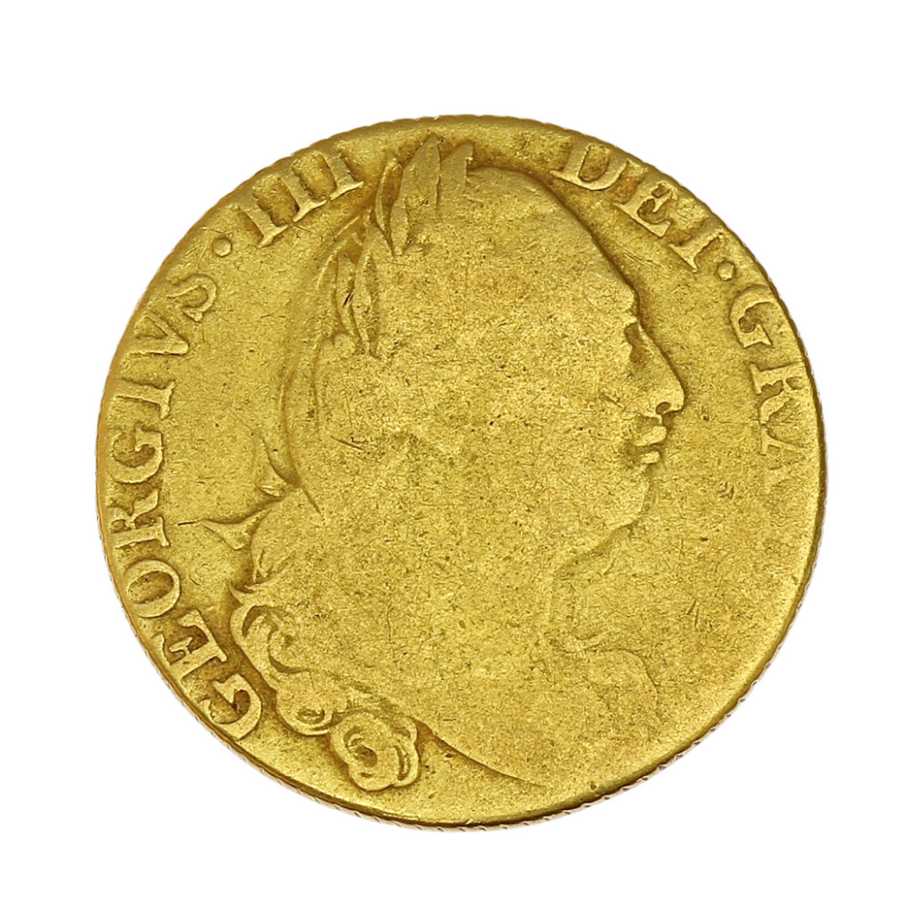 Zlatá mince vyobrazuje britského krále Jiřího III. Materiálem je zlato o ryzosti Au 917/1000. Na její lícové straně se nachází opis: "GEORGIVS.III DEI.GRATIA". Na rubové straně je vyobrazen korunovaný erb, s rokem ražby 1775 a opisem: "M. B. F. ET. H. REX. F. D. B. ET. L. D. S. R. I. A. T. ET. E.".