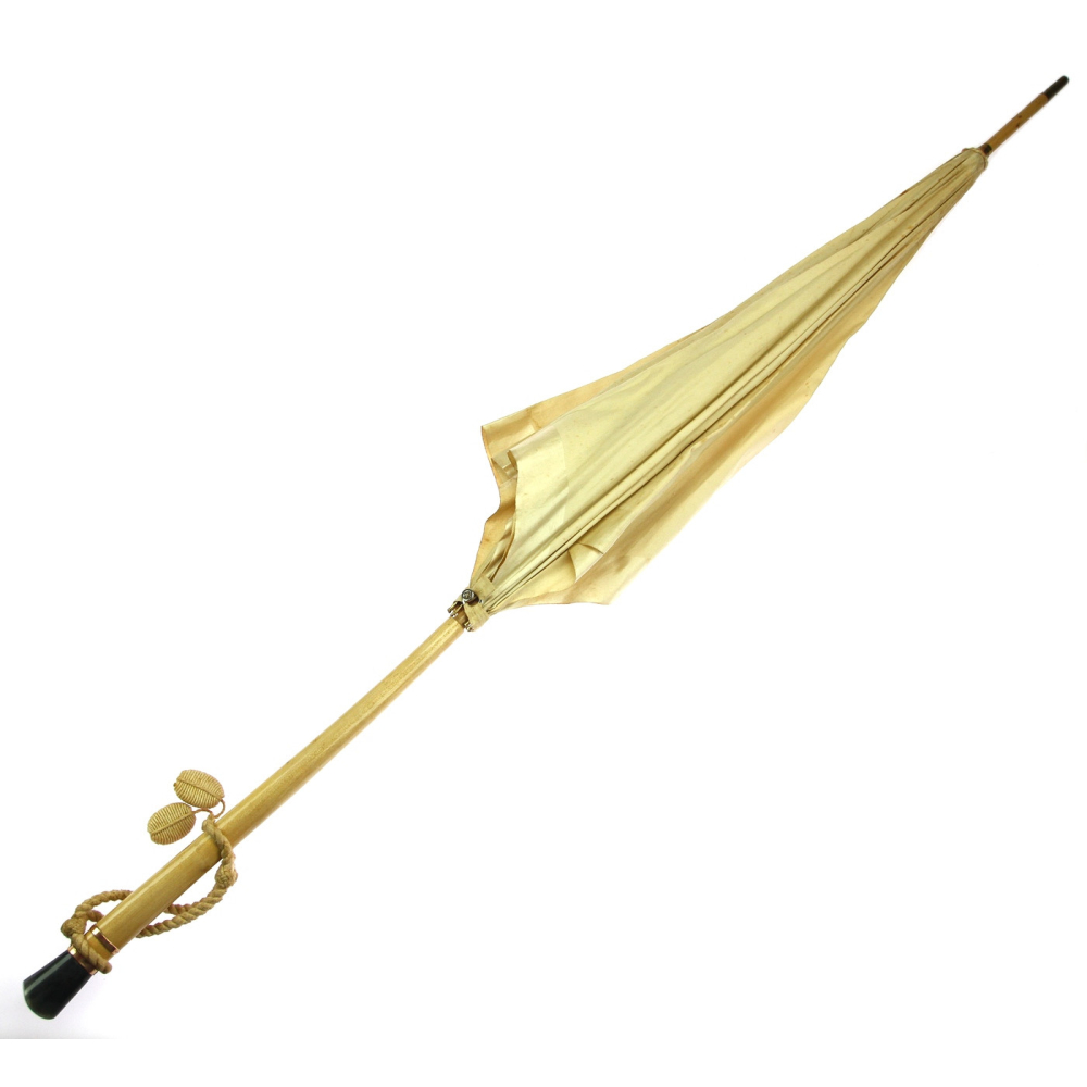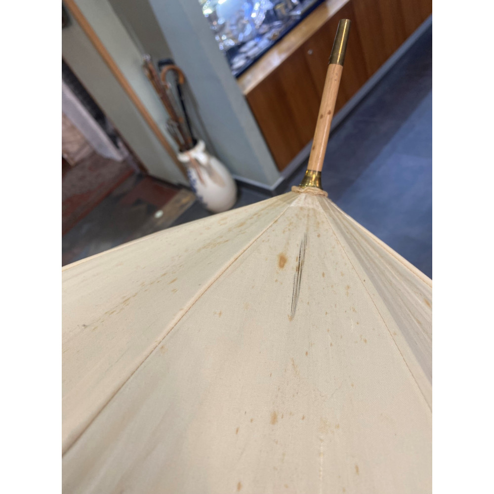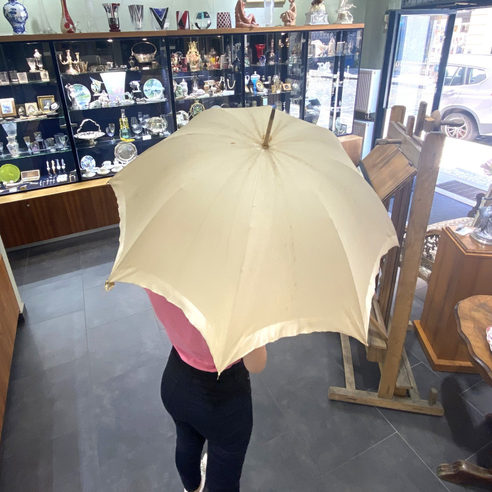 Slunečník vyrobený pravděpodobně na přelomu 19. a 20. století. V dobrém stavu s funkčním rozkládacím mechanismem.