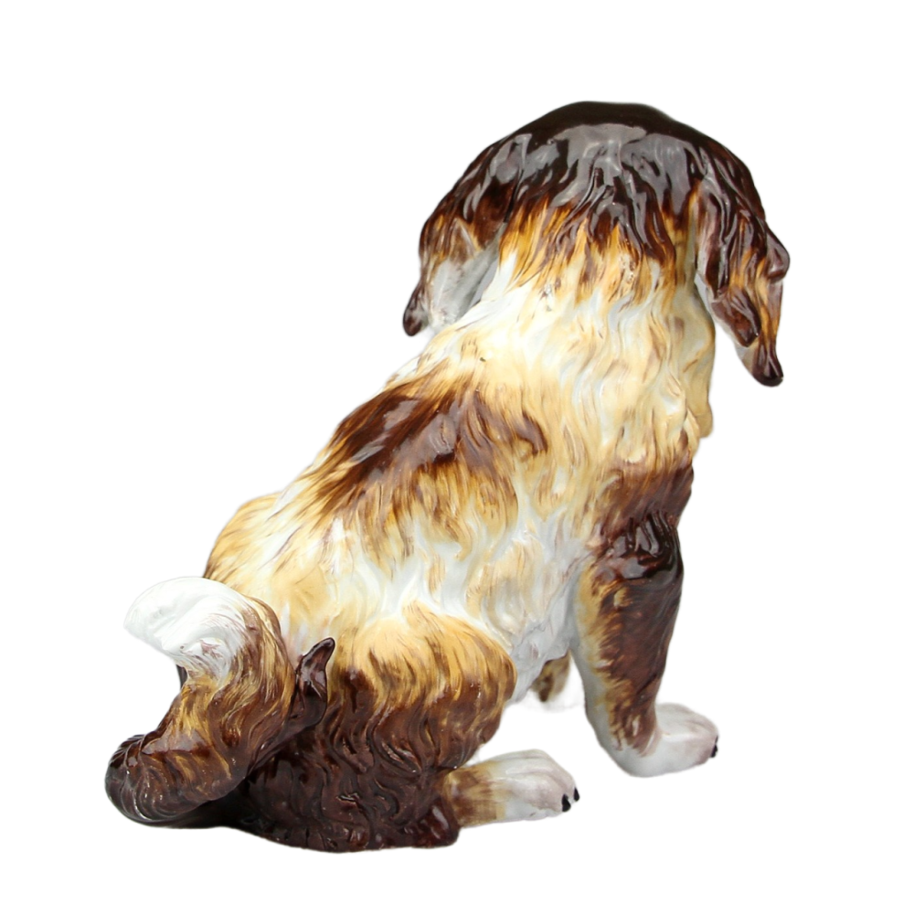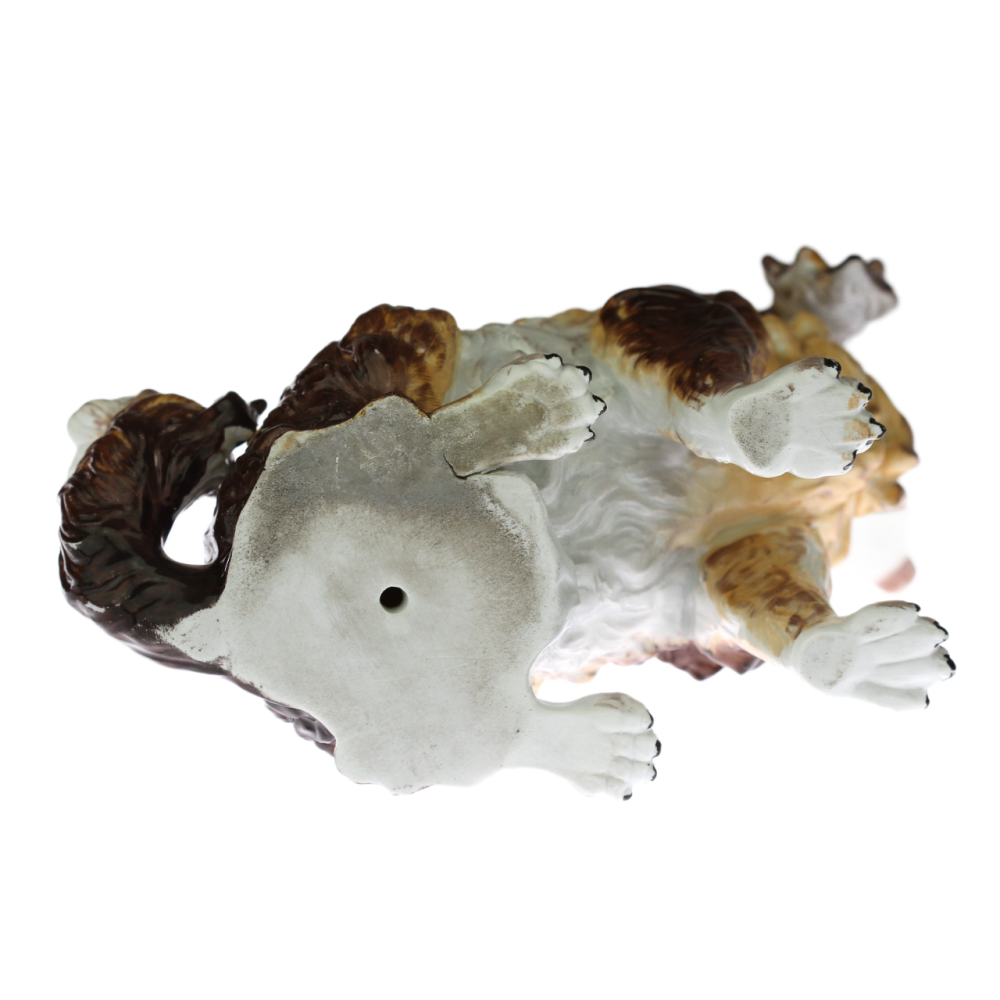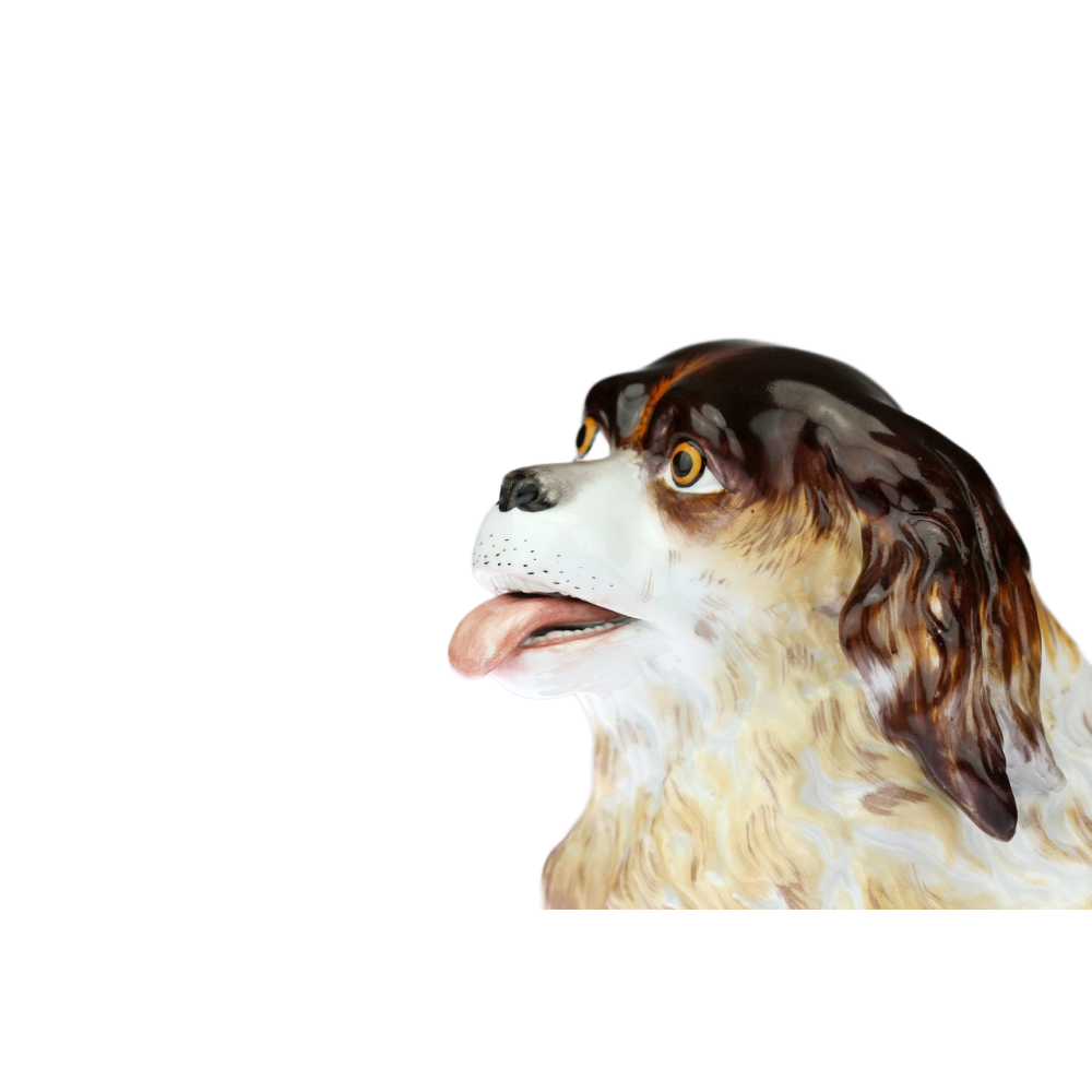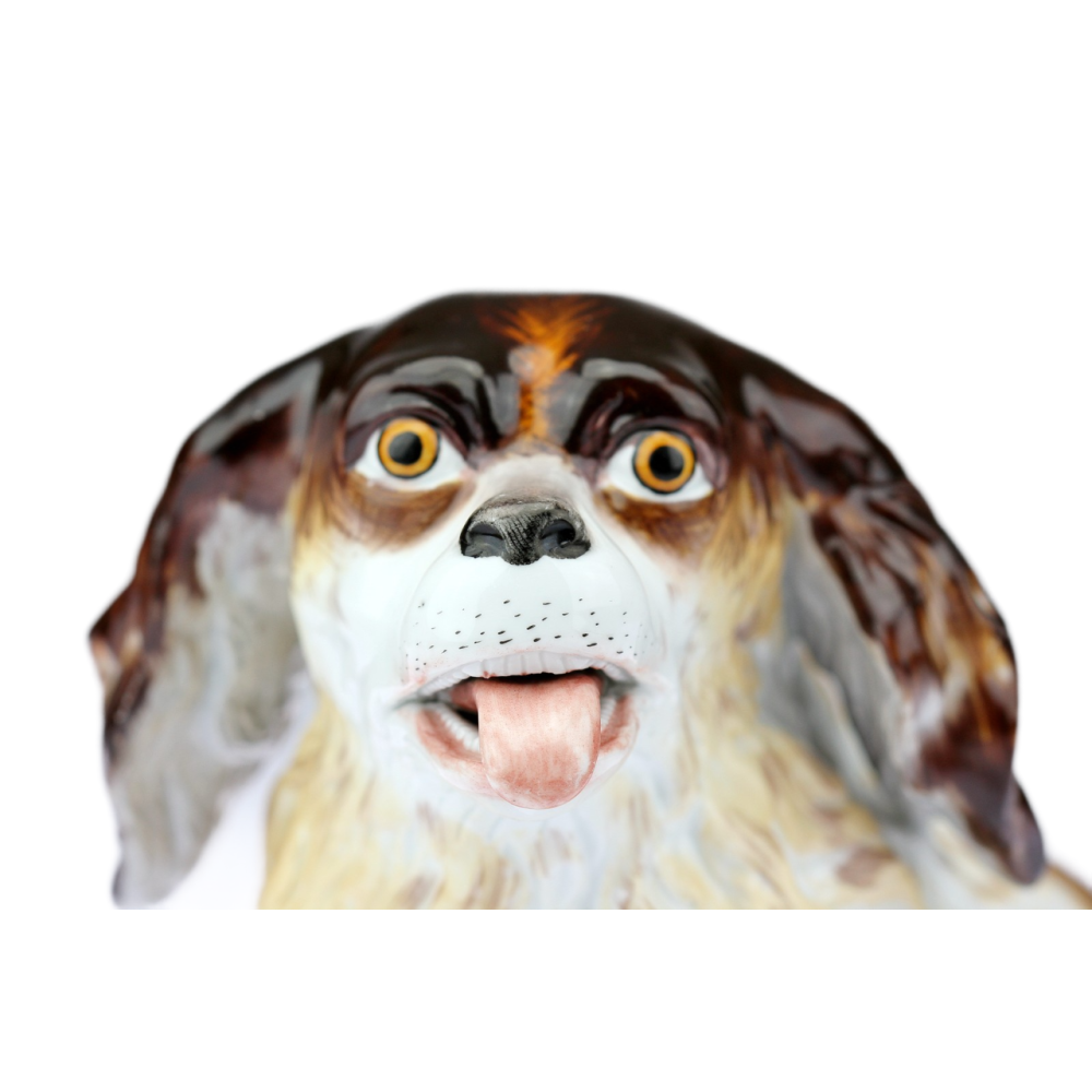 Středně velká porcelánová figura psíka Kavalír king Charles španěl pravděpodobně vyrobená porcelánkou Pirkenhammer (Březová) okolo poloviny 19. století. Nesignováno. Socha je glazovaná.