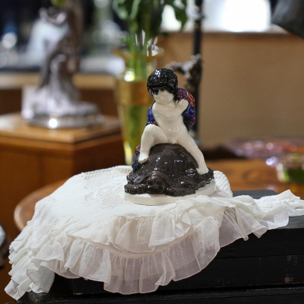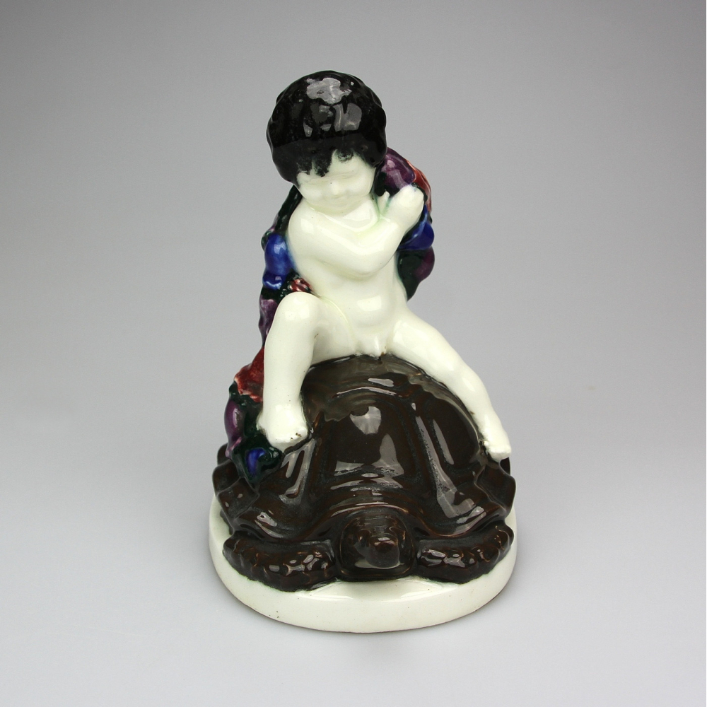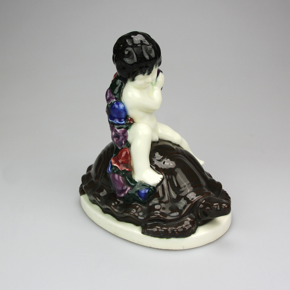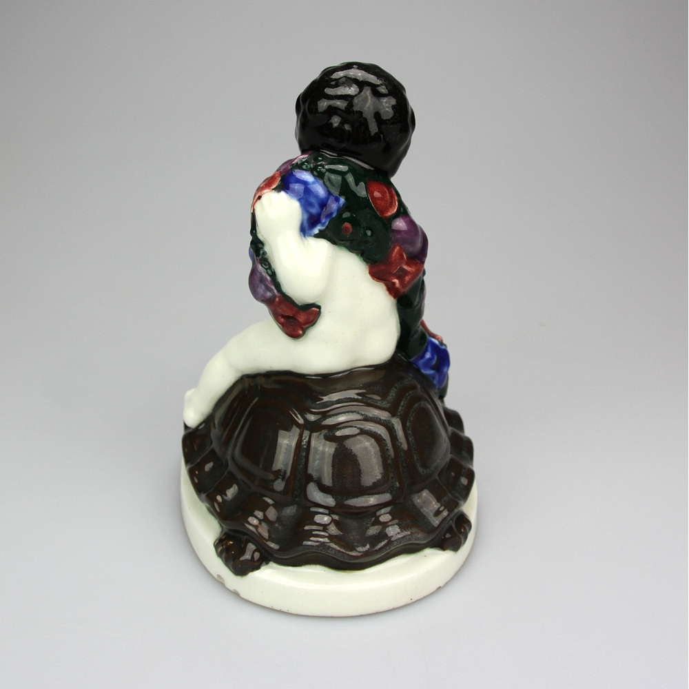 Fajánsová soška "Chlapec na želvě" vyrobena ve stylu vídeňské secese okolo roku 1910. Soška je produkcí firmy Serapis Wahliss, vyrobena dle návrhu Karla Klause.