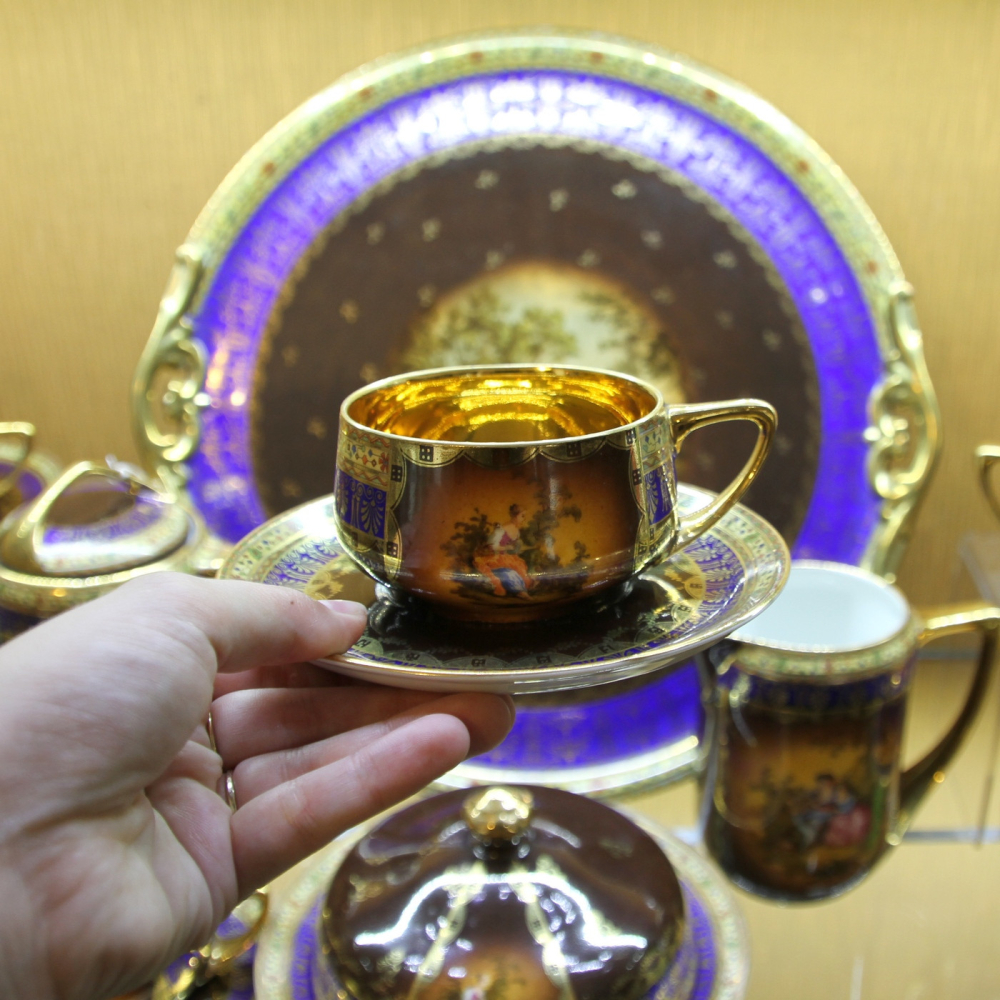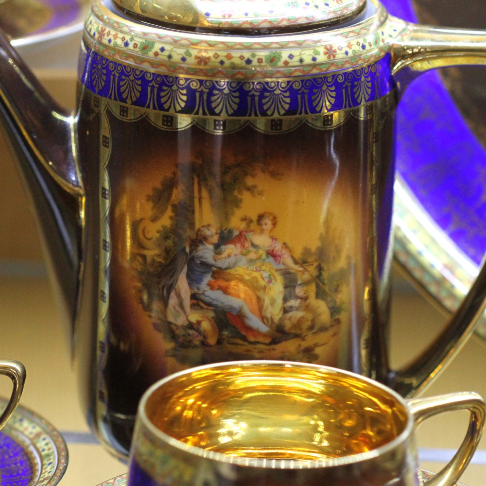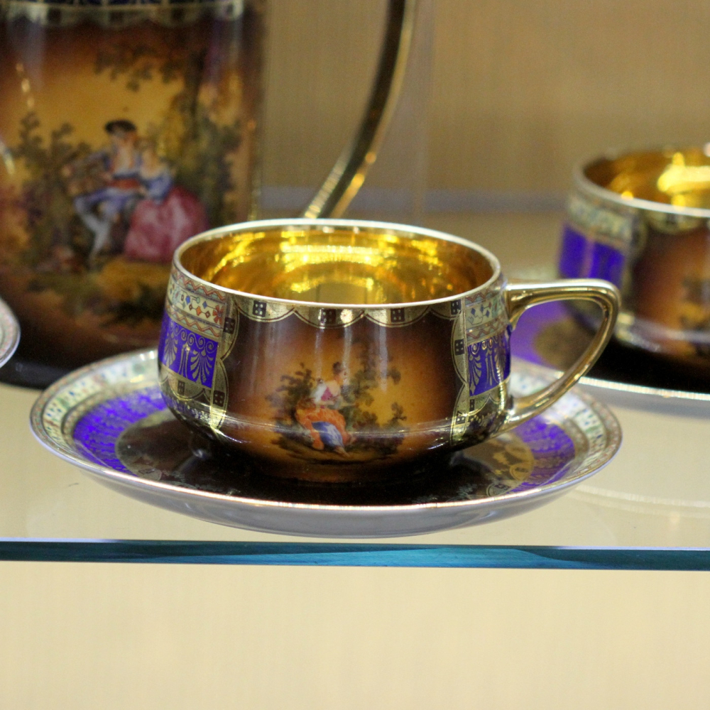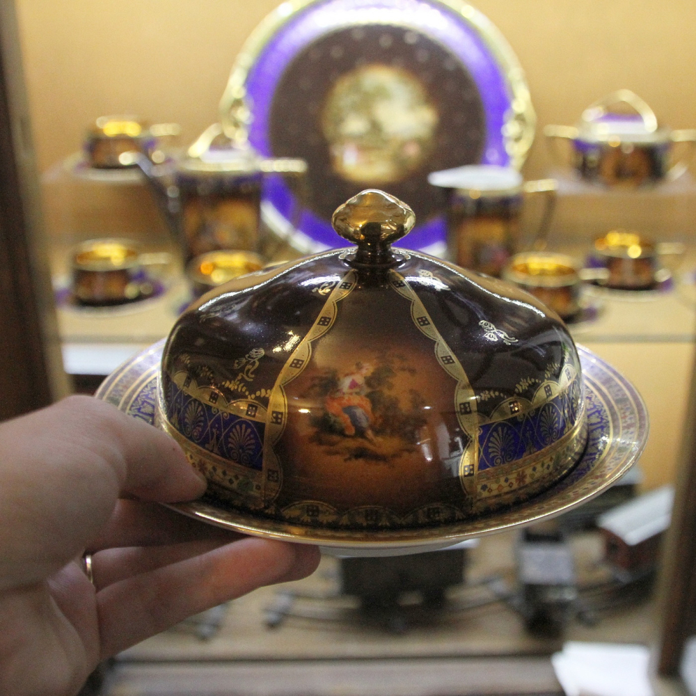 Porcelánový popelník zdobený antickým motivem a nápisem " Karlovy Vary".