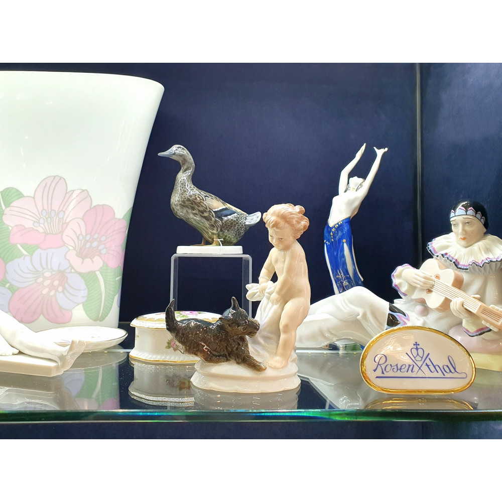 Drobné porcelánové sousoší od světoznámé značky Rosenthal zobrazuje chlapce při hře s pejskem. Modelérem je v tomto případě Max Hermann Fritz (1873-1948), soška pochází z roku 1940.