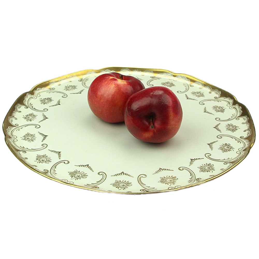 Větší kruhový tác vyrobený z porcelánu, při okrajích zdoben zlatou samolepkou. Bavorská práce z 50. - 60. let 20. století.