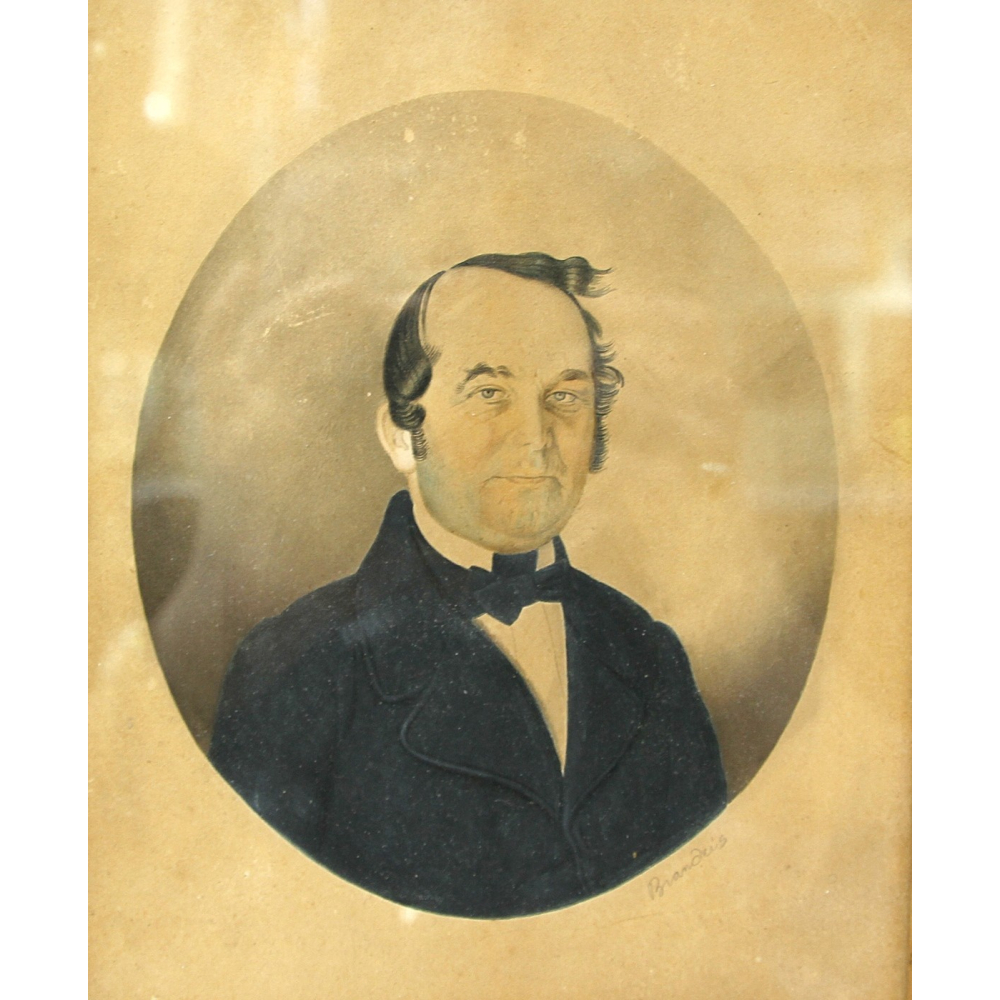 Krásná drobnopisná portrétní malba od známého českého portrétisty a fotografa Jana Adolfa Brandeise (1818-1872). Malíř použil techniku kvaše.