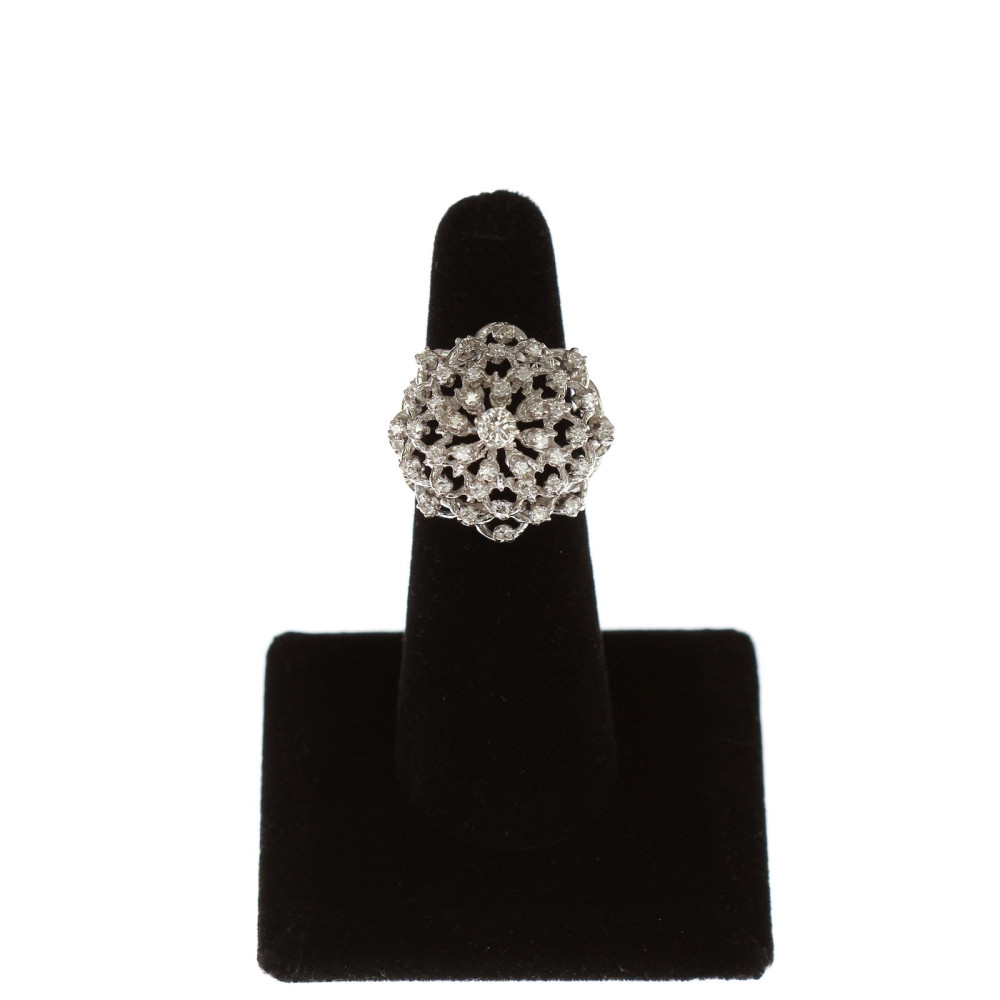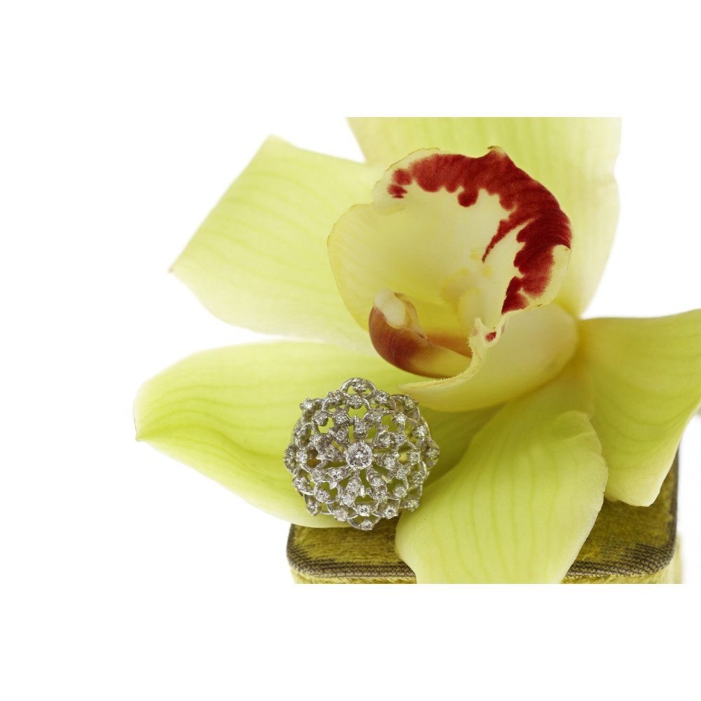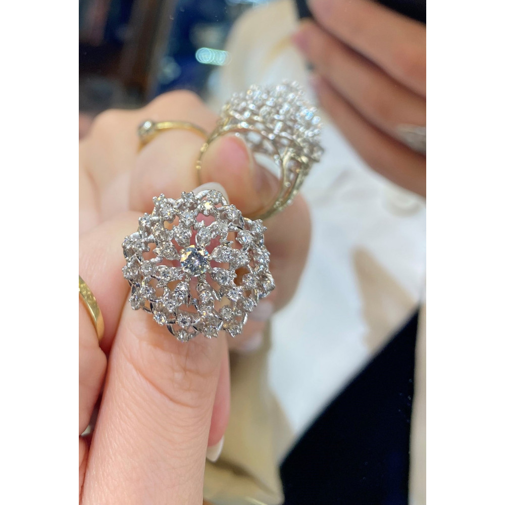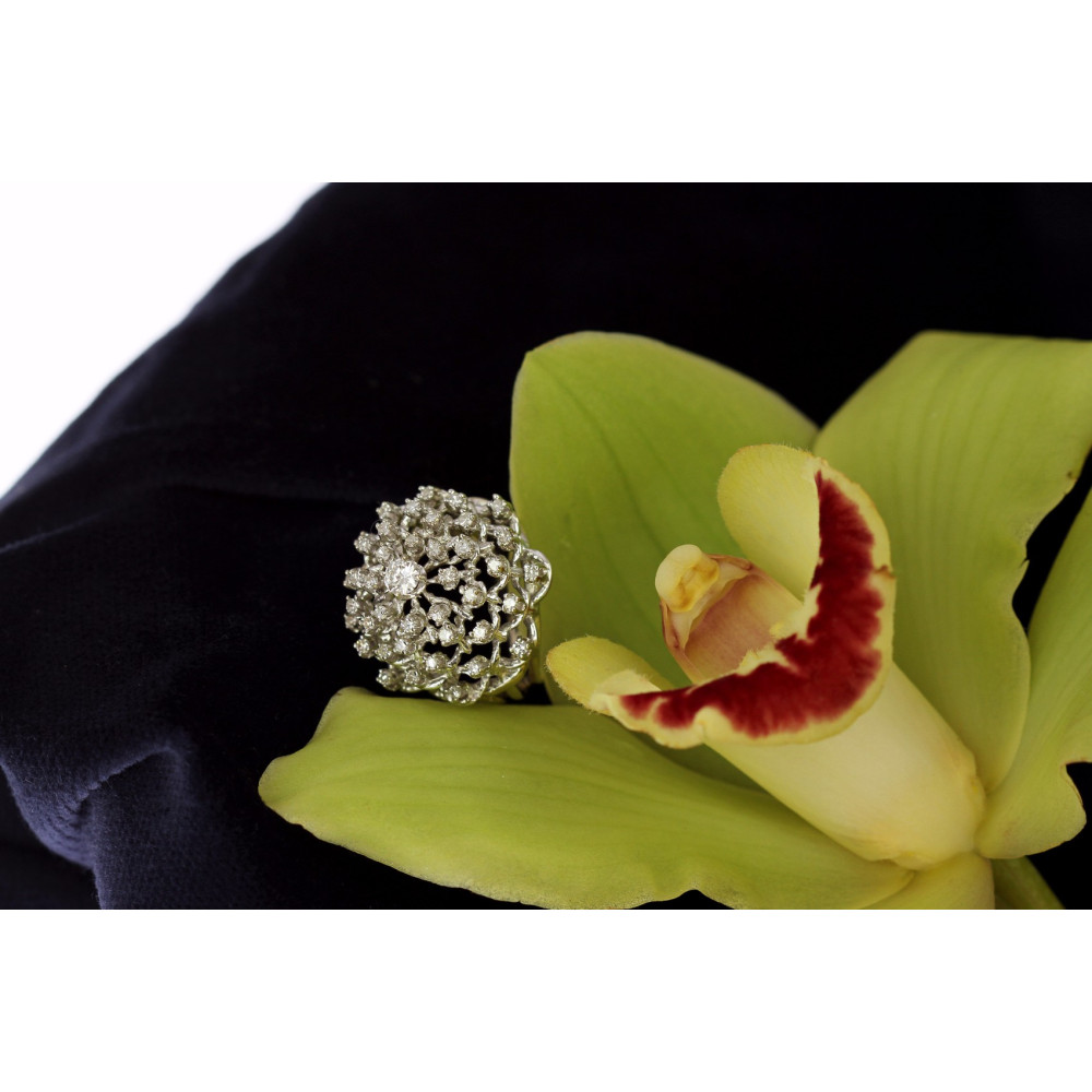 Prsten zhotovený z téměř 17karátového zlata má do stupňovité korunky zasazené přírodní diamanty o celkové váze 1,02 ct vynikající barvy a čistoty. Centrální diamant briliantového brusu váží 0,22 ct (má nejlepší možnou barvu D, čistotu VVS). Dále diamanty jednoduchého brusu 40 × 0,02 ct mají barvu D-F a čistotu VS.