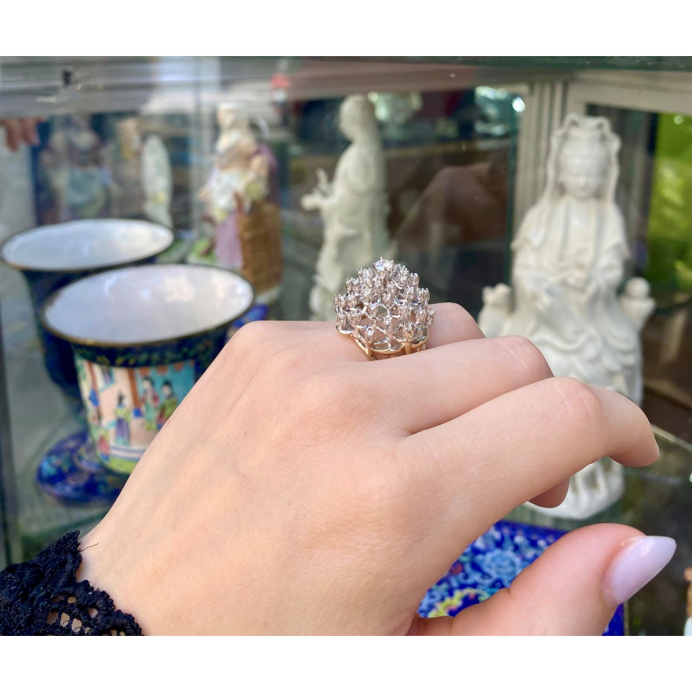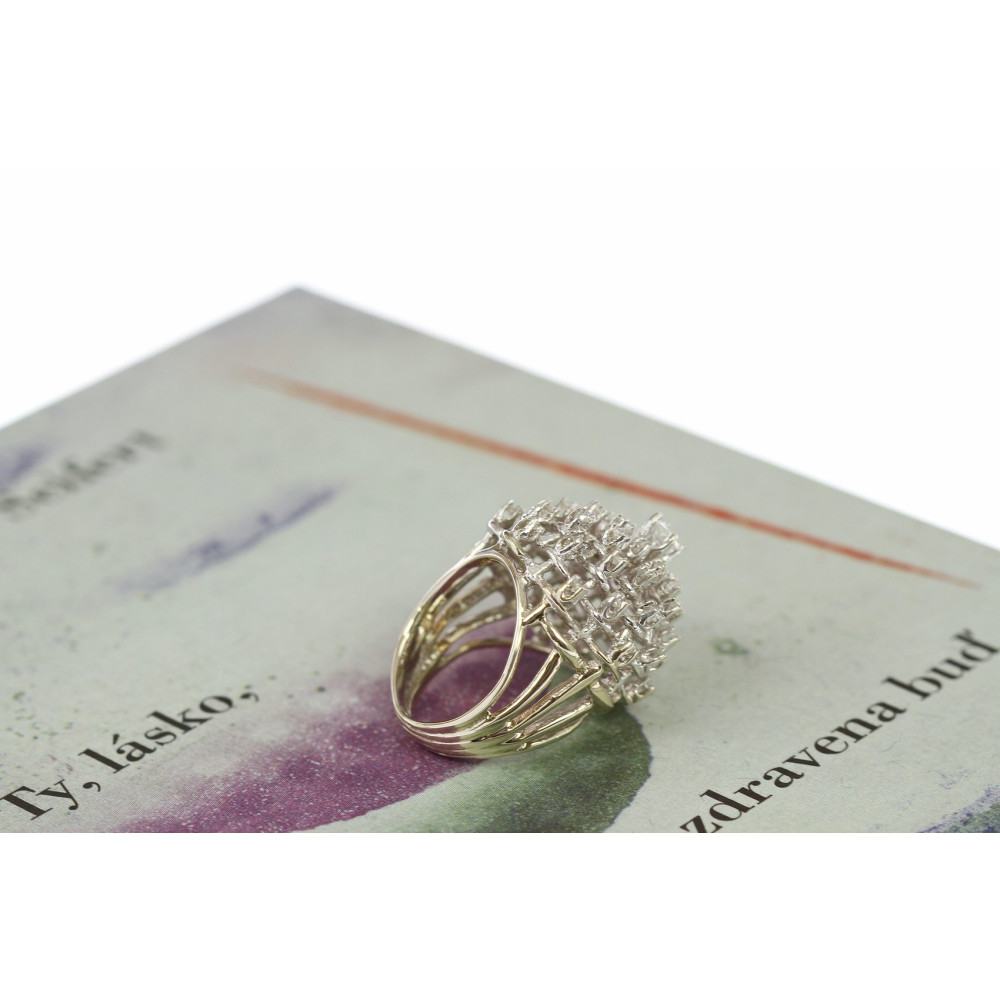 Zlatý prsten se stupňovitou korunkou posázenou diamanty