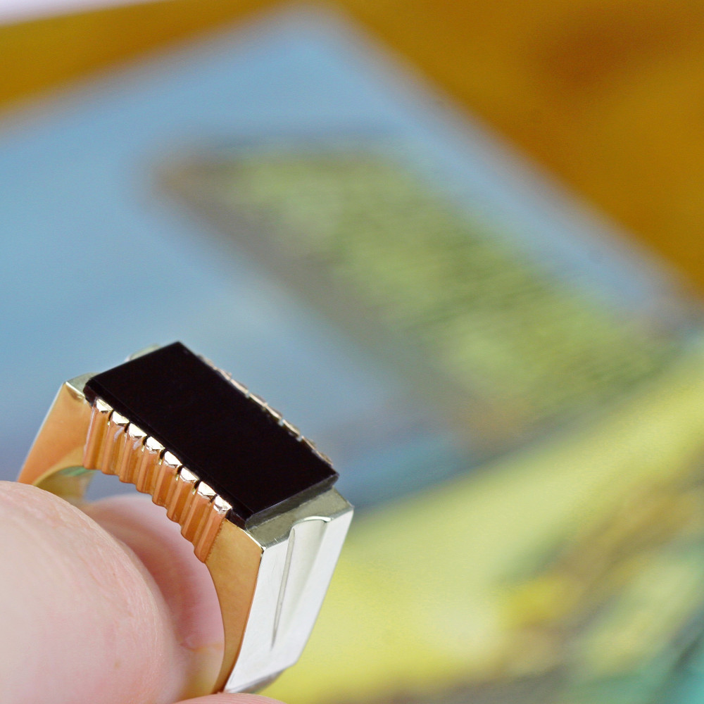 Zlatý pánský prsten s želvovinovou kamejí