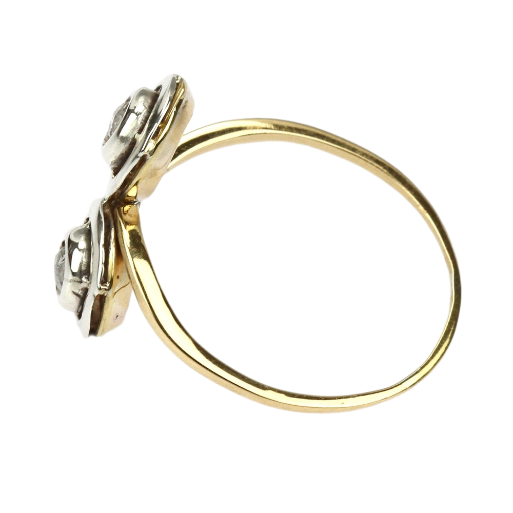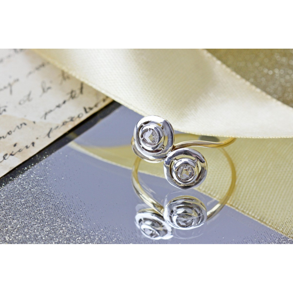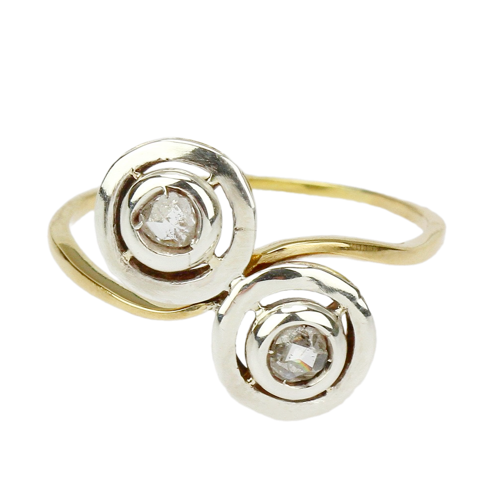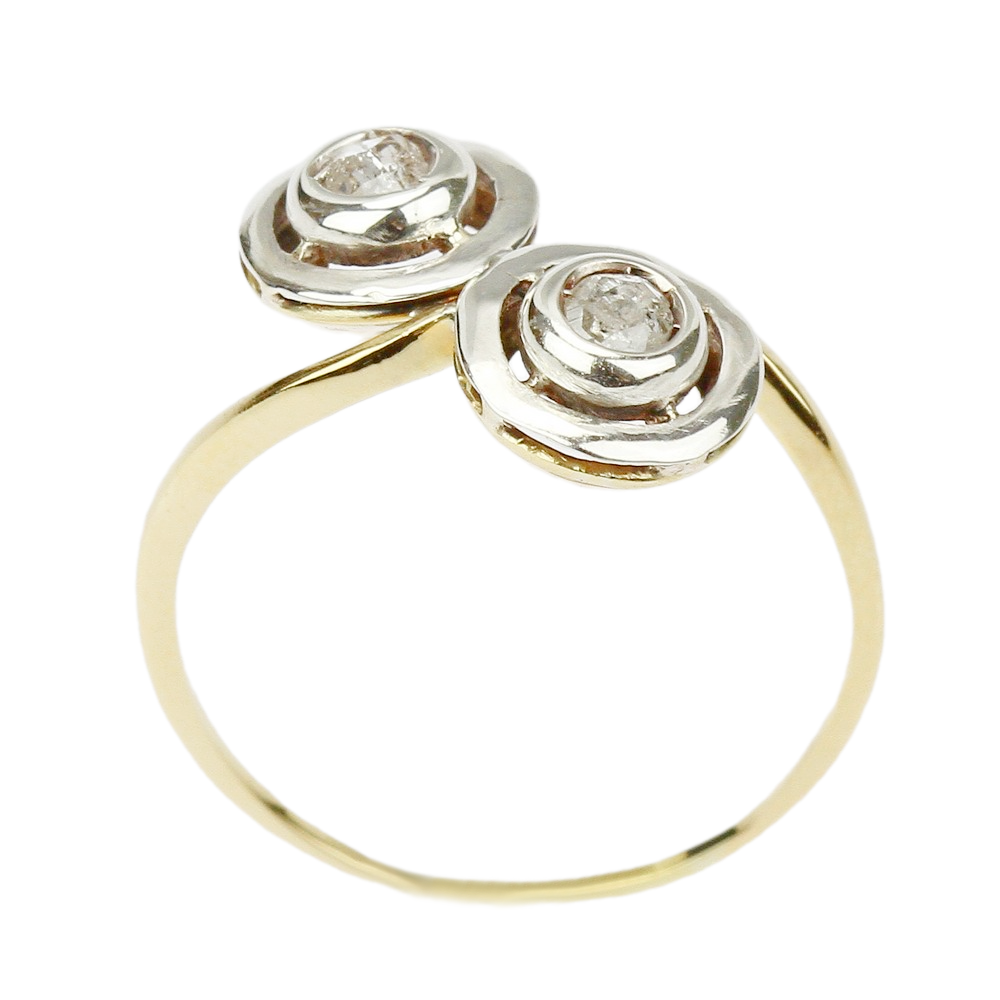 Prsten s korunkou řešenou do podoby dvou terčů, v jejichž středu jsou zasazeny přírodní diamanty routového brusu. Materiálem je žluté 18karátové zlato v kombinaci se stříbrem. Šperk byl vyroben v meziválečném období ve 20.–30. letech 20. století.