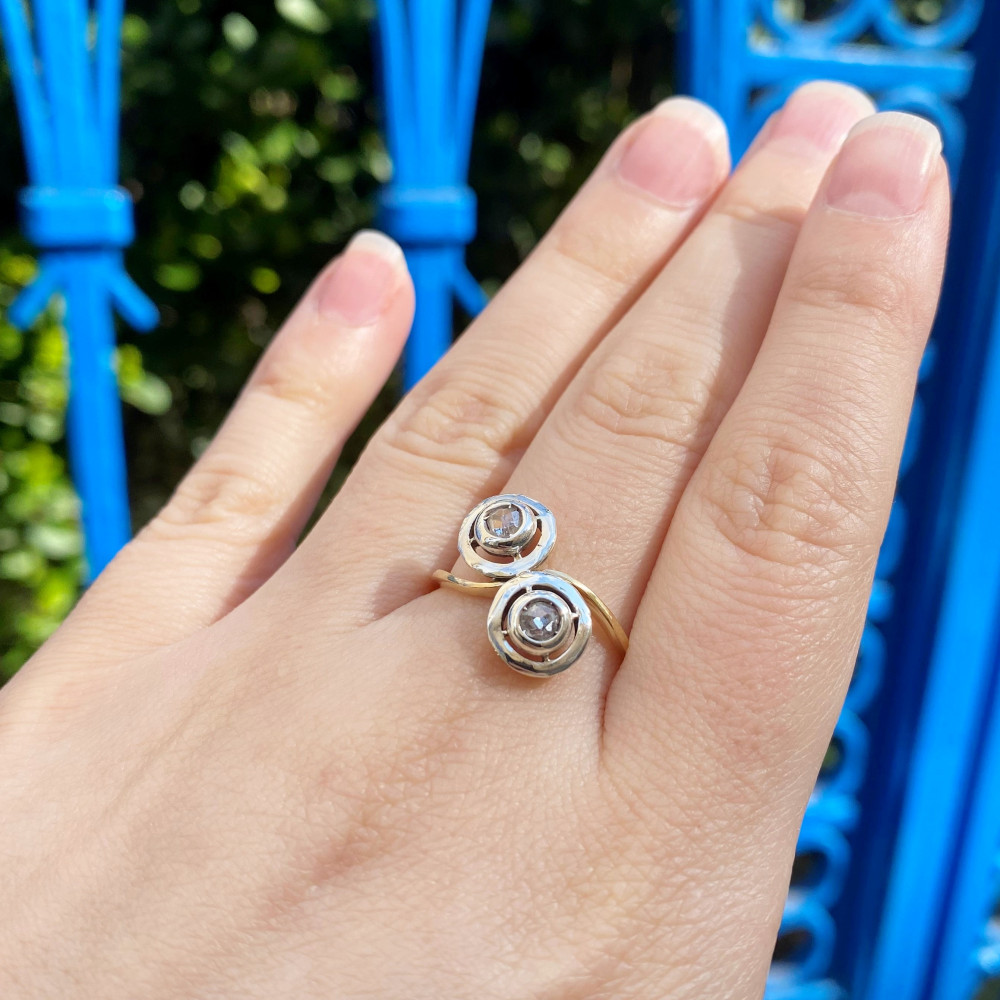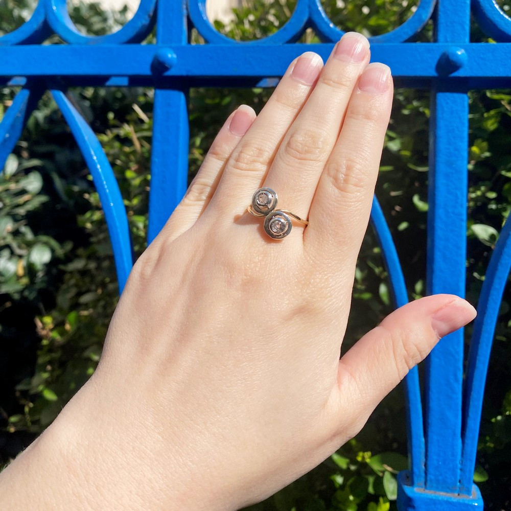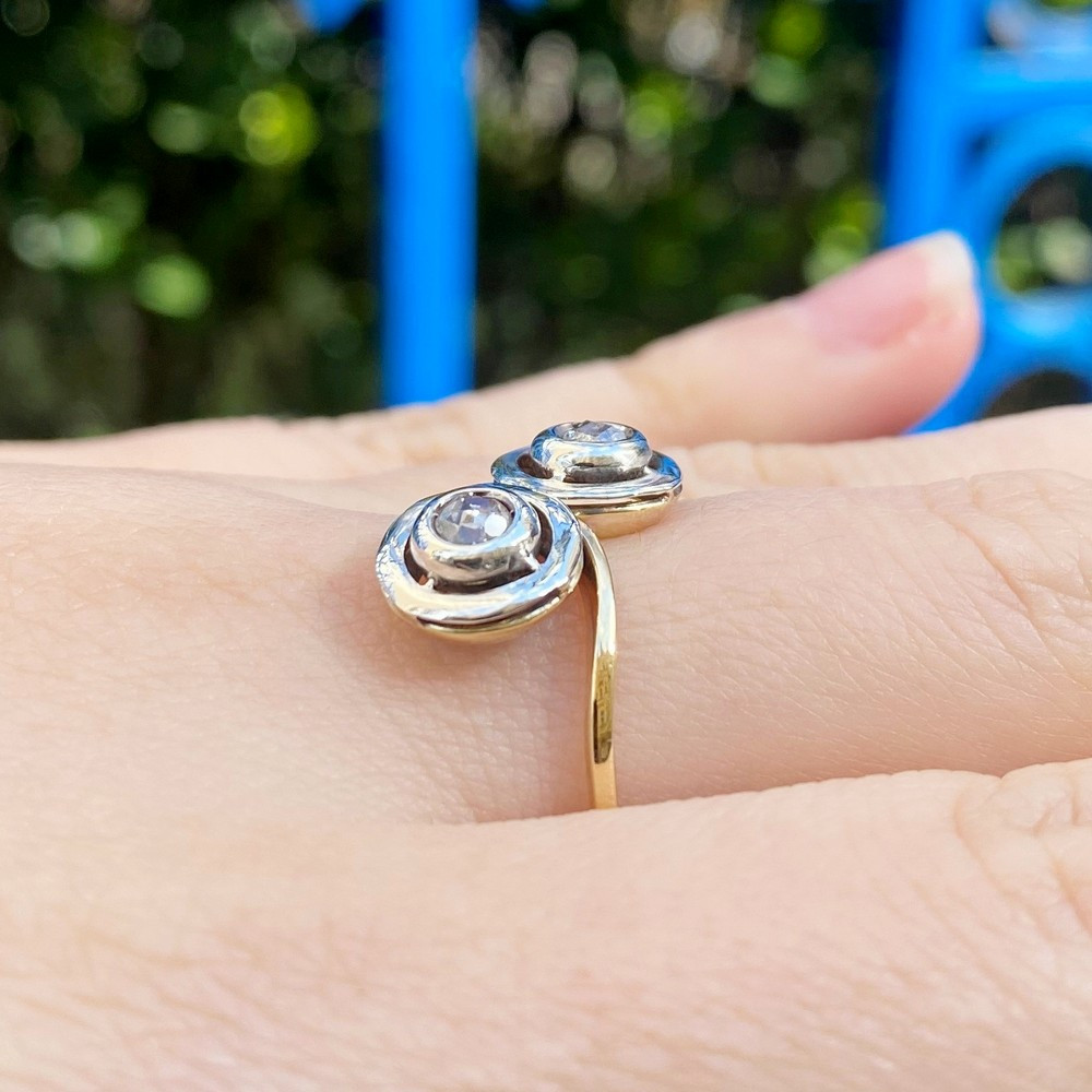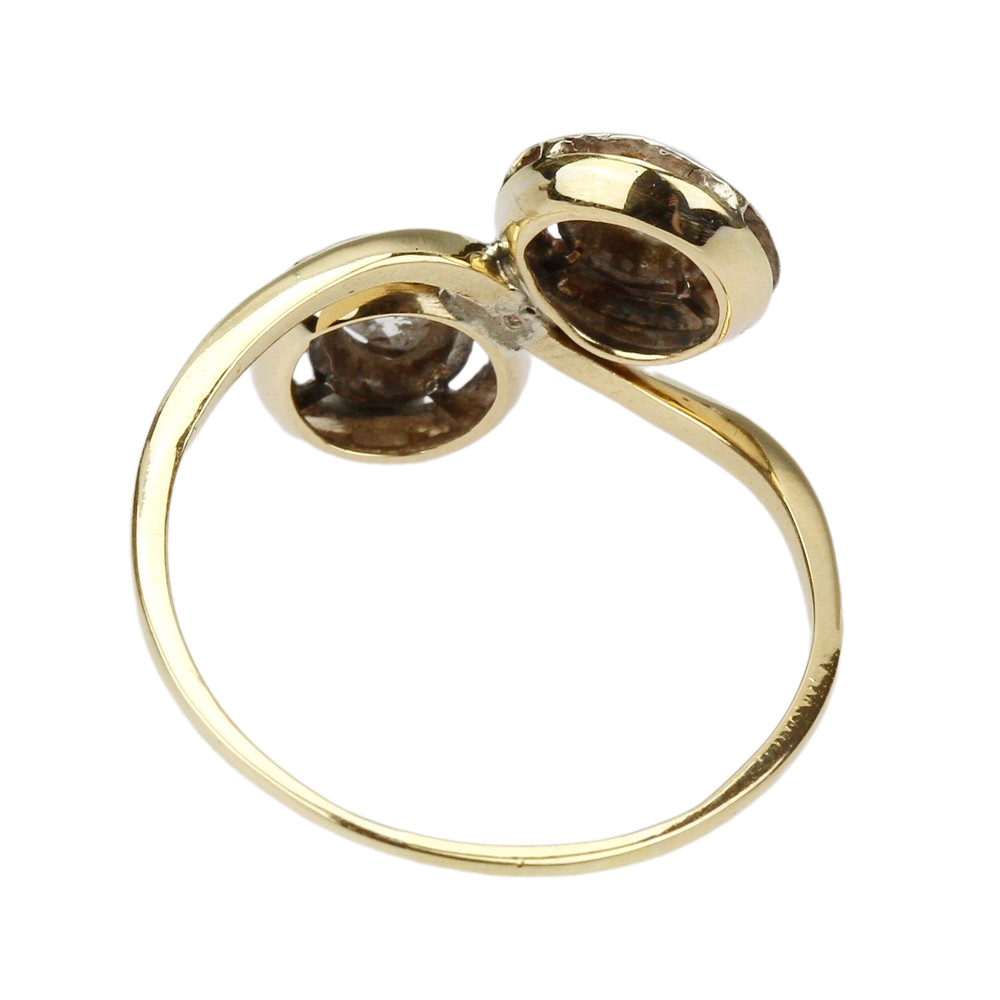 Prsten s korunkou řešenou do podoby dvou terčů, v jejichž středu jsou zasazeny přírodní diamanty routového brusu. Materiálem je žluté 18karátové zlato v kombinaci se stříbrem. Šperk byl vyroben v meziválečném období ve 20.–30. letech 20. století.