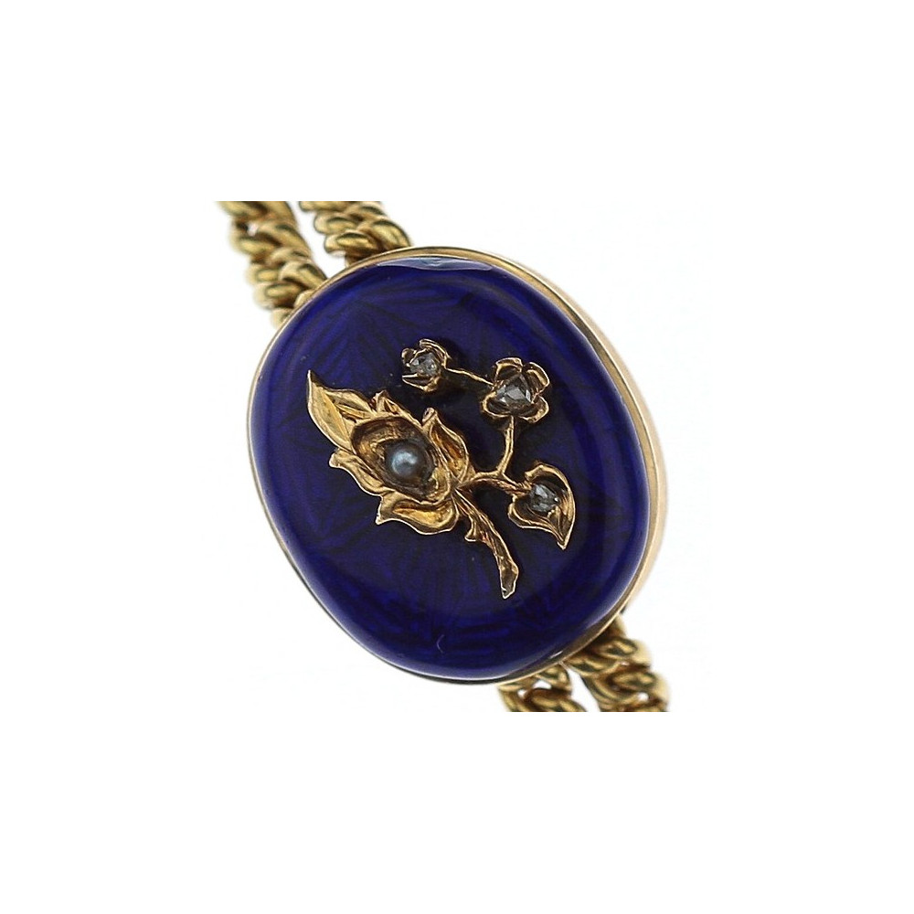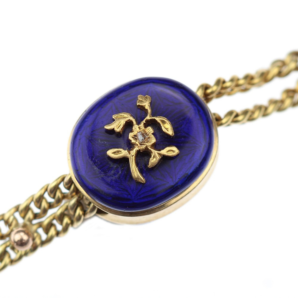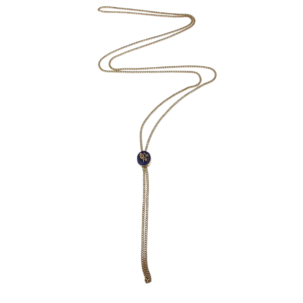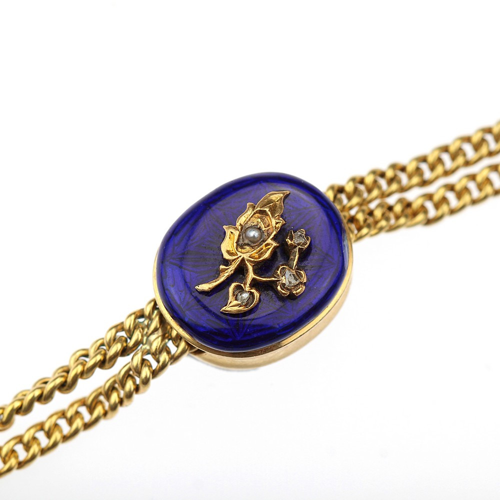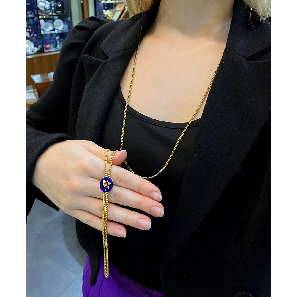 Řetěz o délce 114 cm je vyroben ze žlutého 14karátového zlata (ryzost 580/1000) a je označen rakousko-uherským puncem „liška". Smaltovaný povrch posuvného jezdce zdobí zlaté apliky s perličkou a přírodními diamantovými routami. Na řetízku je umístěna zarážka, která brání jeho samovolnému vyjetí. Smalt je v jednom místě nepatrně poškozen – viz fotografie.