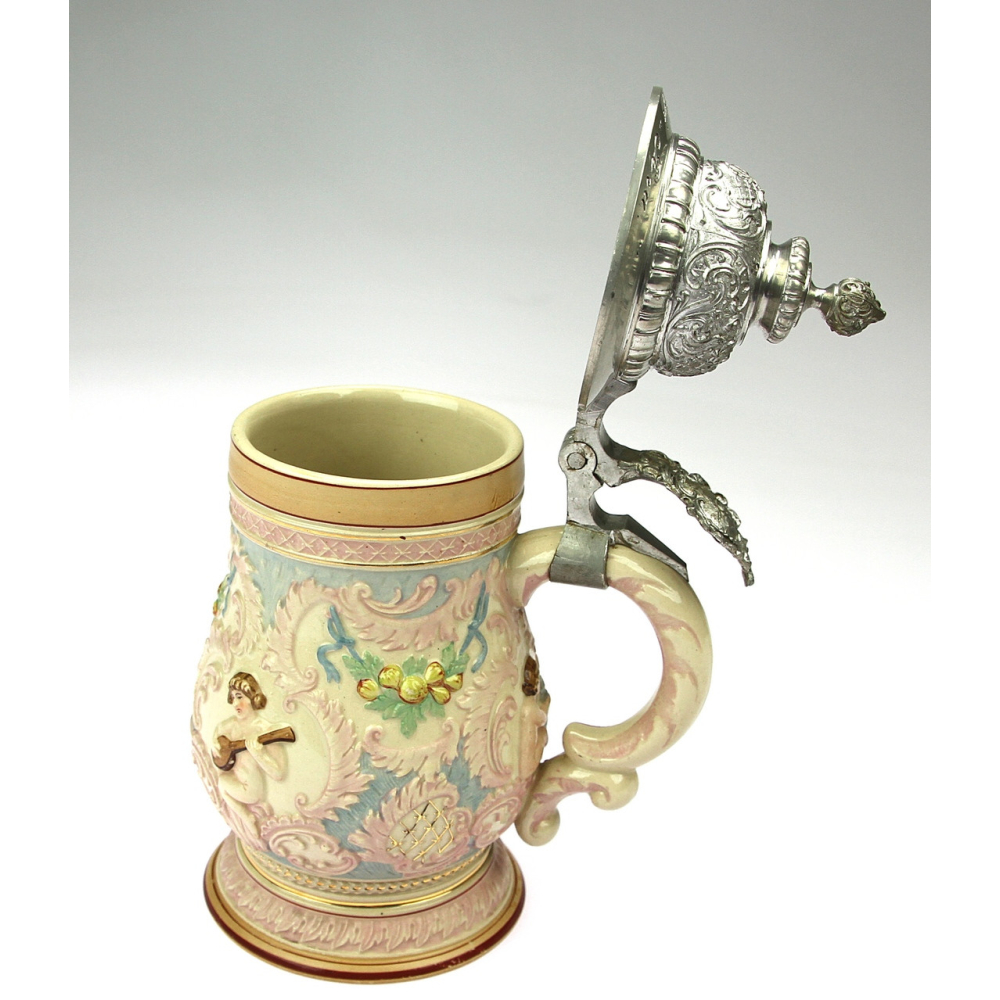 Keramická holba s cínovým poklopem