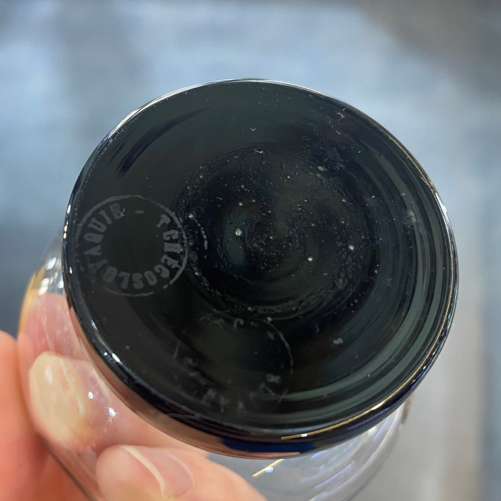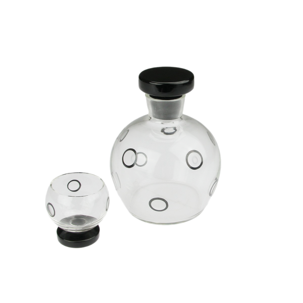 Karafa vyrobená z fasetovaného skla s nádechem žlutého uranového skla. Vyrobeno v období biedermeieru v 1. polovině 19. století.