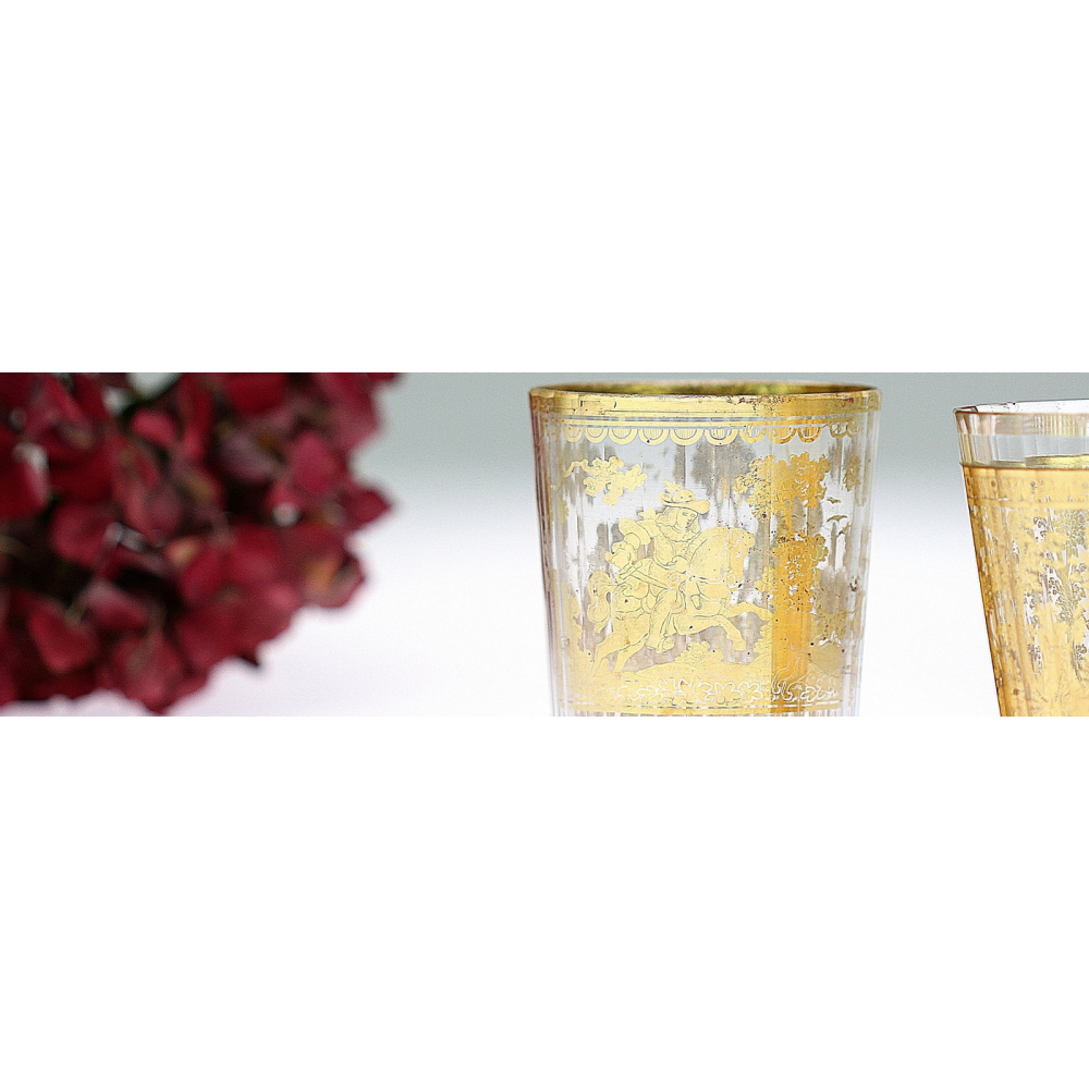 - Křišťálové fasetové sklo, dvojstěnka se zlatou fólií