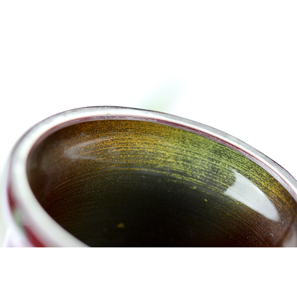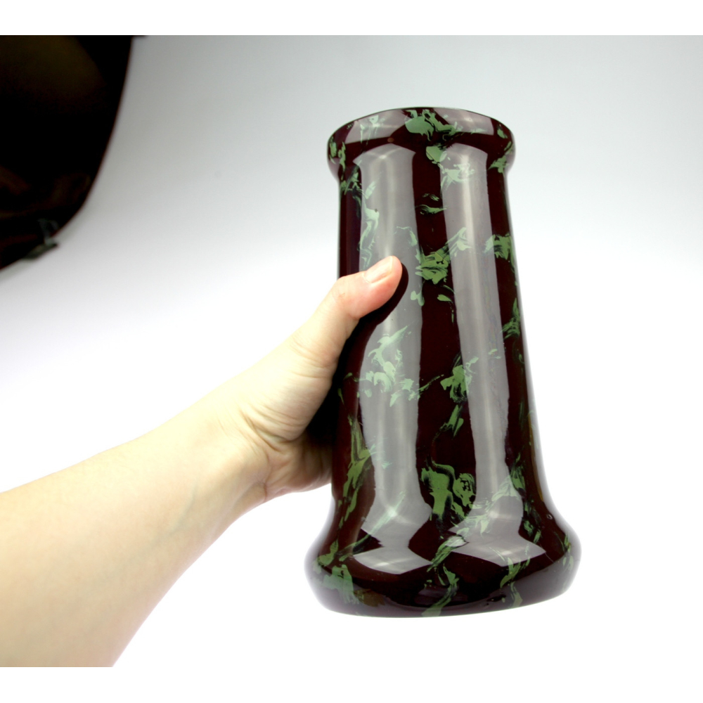Tmavočervená secesní váza se zeleným mramorováním