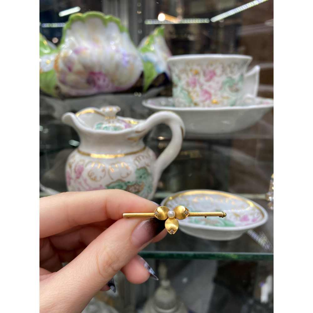 Zlatá brož s perlou a diamanty