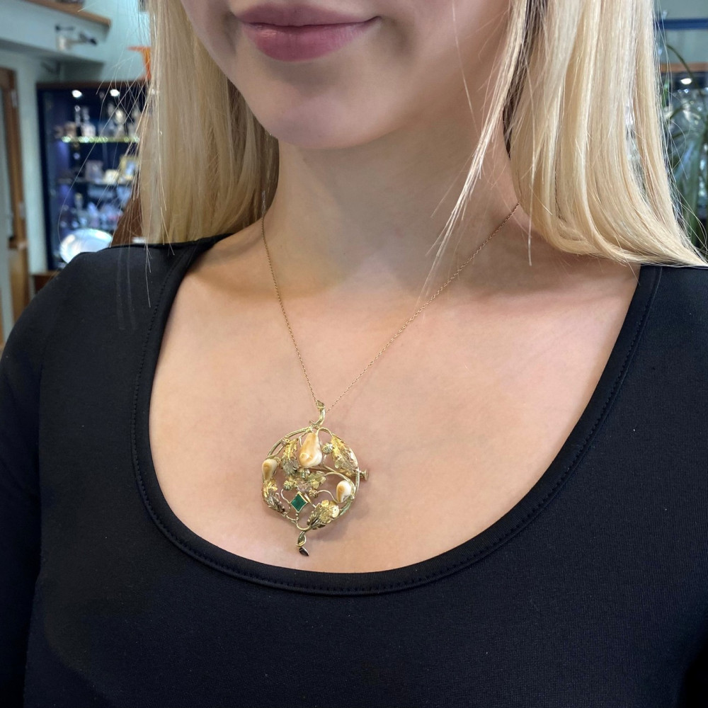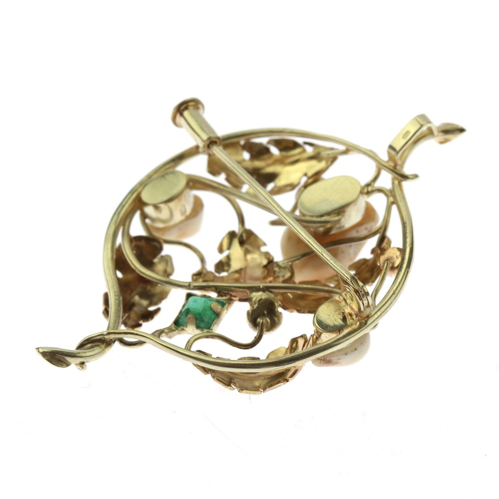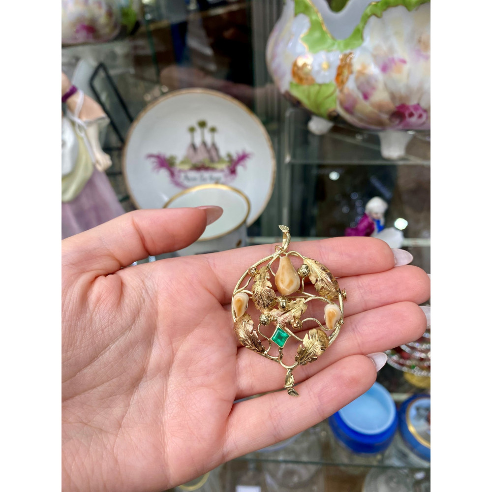 Zlatá brož/přívěsek s grandlemi a smaragdem