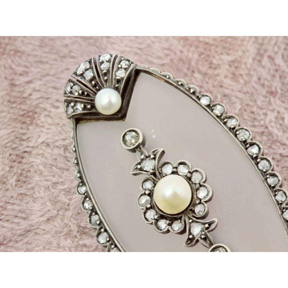 Rakousko-uherská brož s horským křišťálem, diamanty a perlami