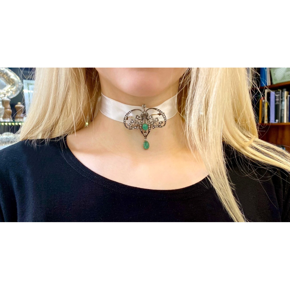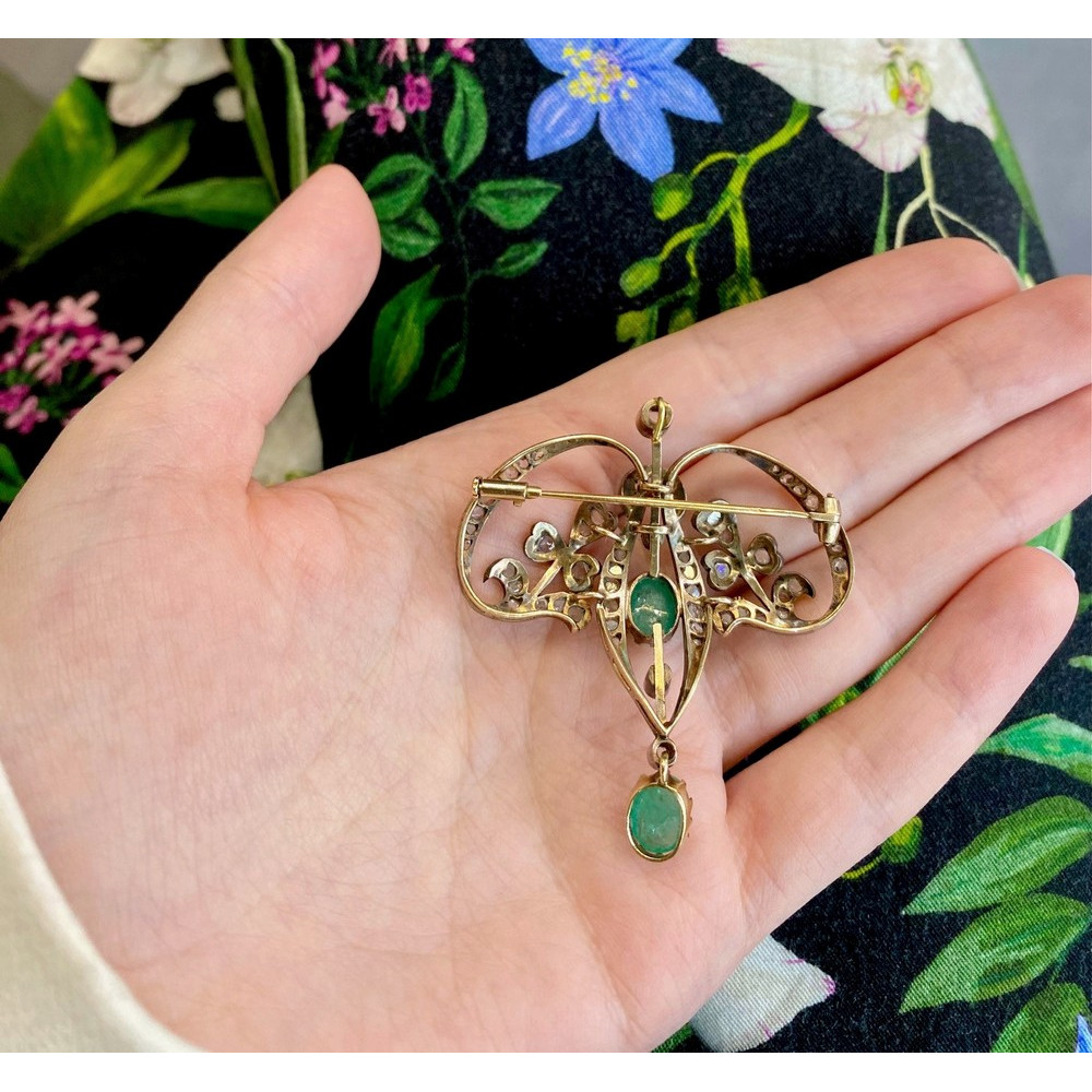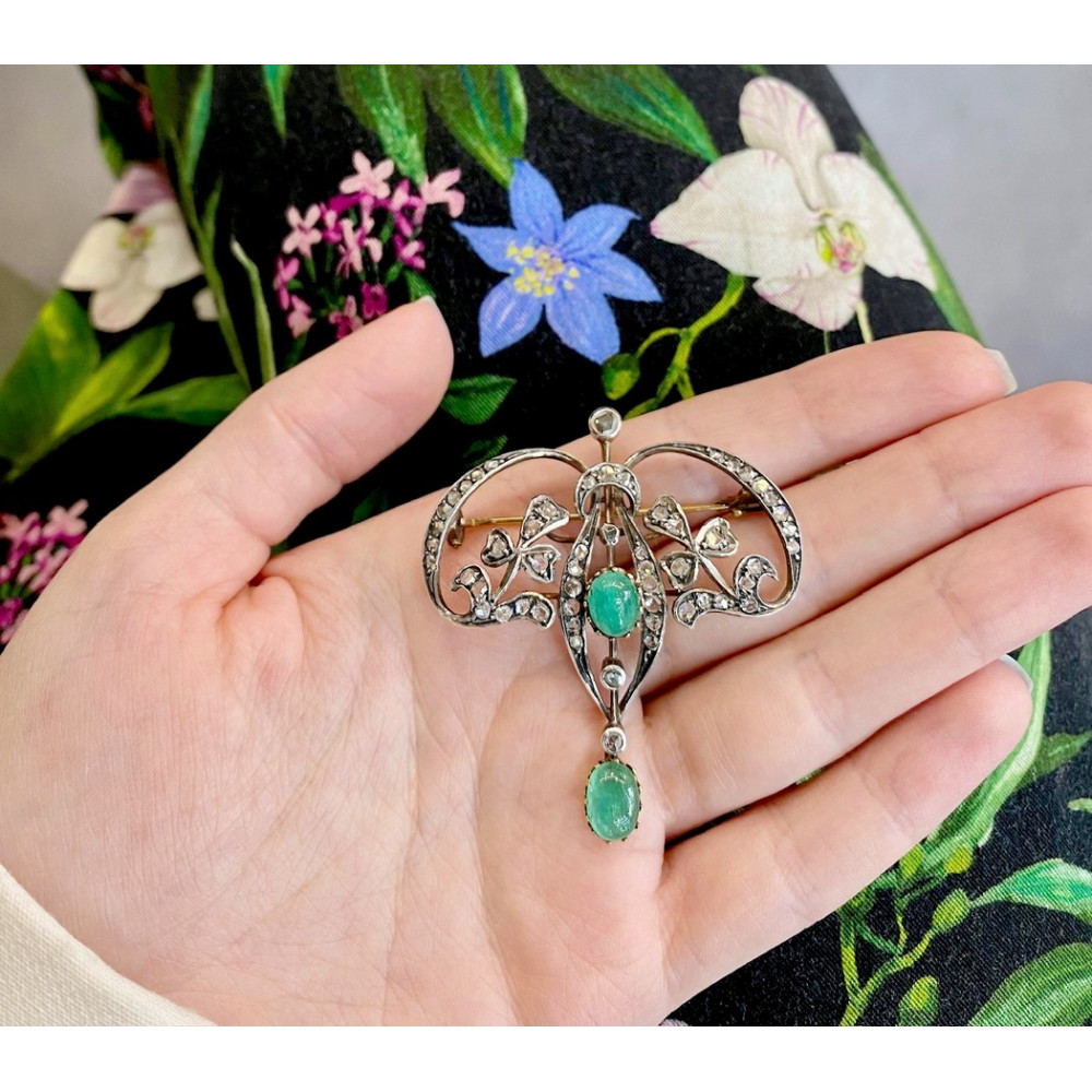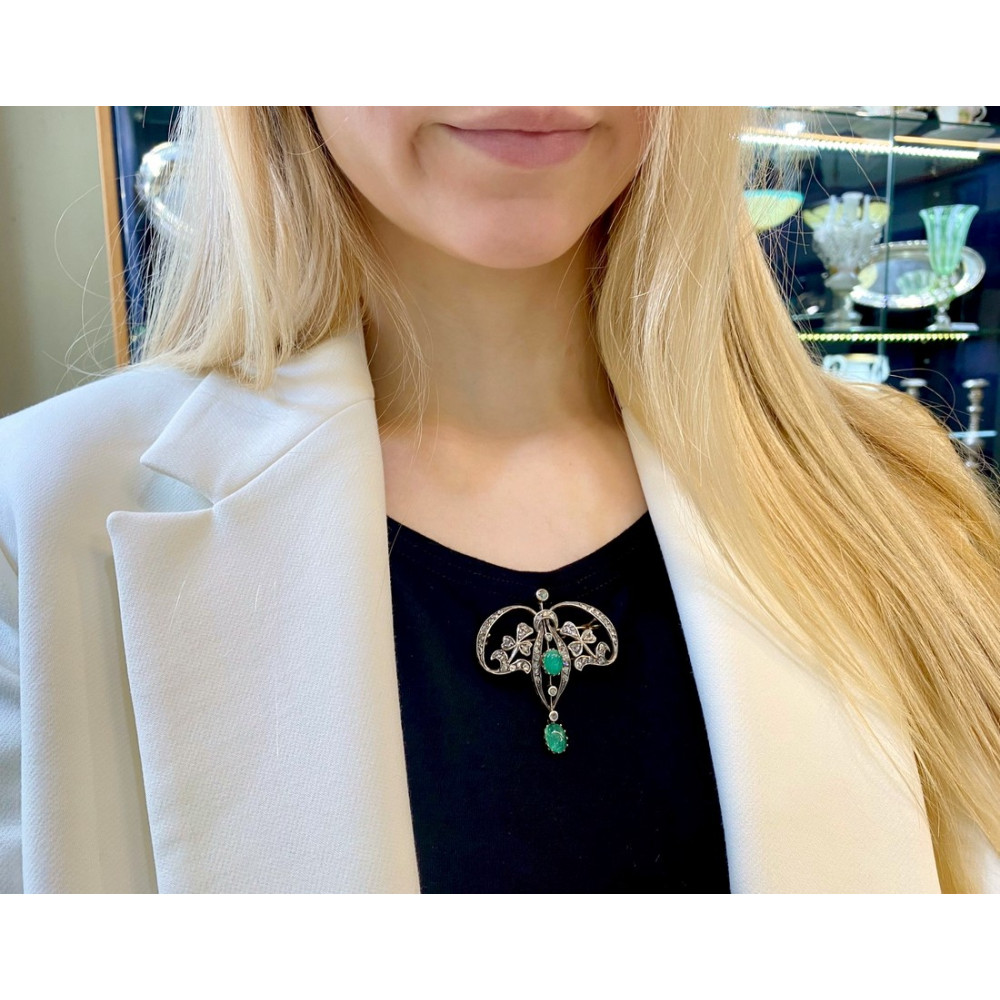 Belle Époque brož s diamanty a smaragdy