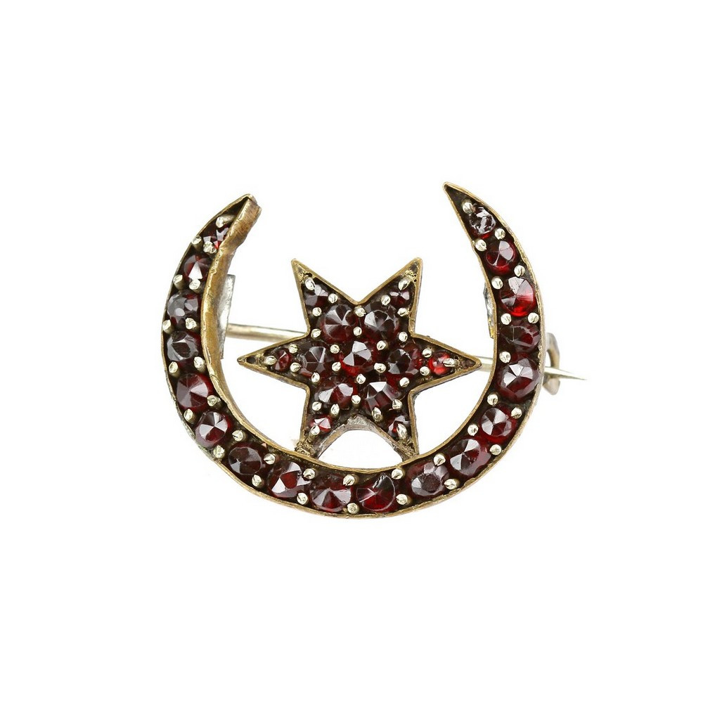 Brož s českými granáty - měsíc s hvězdou