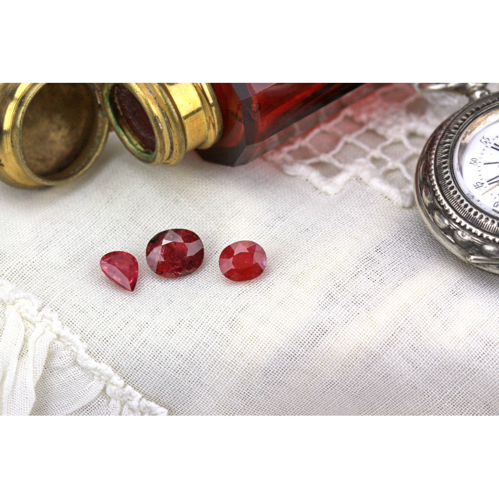 Volný kámen přírodní rubín červené barvy kapkového brusu o váze 1,01 ct s rozměry 7,96 × 5,84 × 2,68 mm. Kámen byl upravován zahříváním. Původem z Thajsko. Doplněno o certifikaci (026156) od španělské gemologické společnosti Instituto Gemológico Español (IGE).