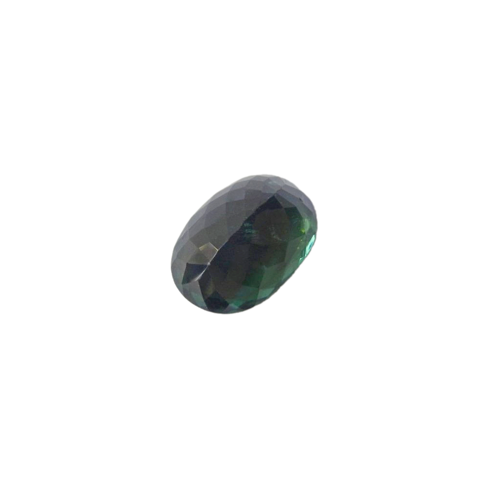 Volný kámen - přírodní turmalín tmavě zelené barvy, oválného brusu o váze 4,56 ct s rozměry 12,86 × 9,11 × 5,45 mm.