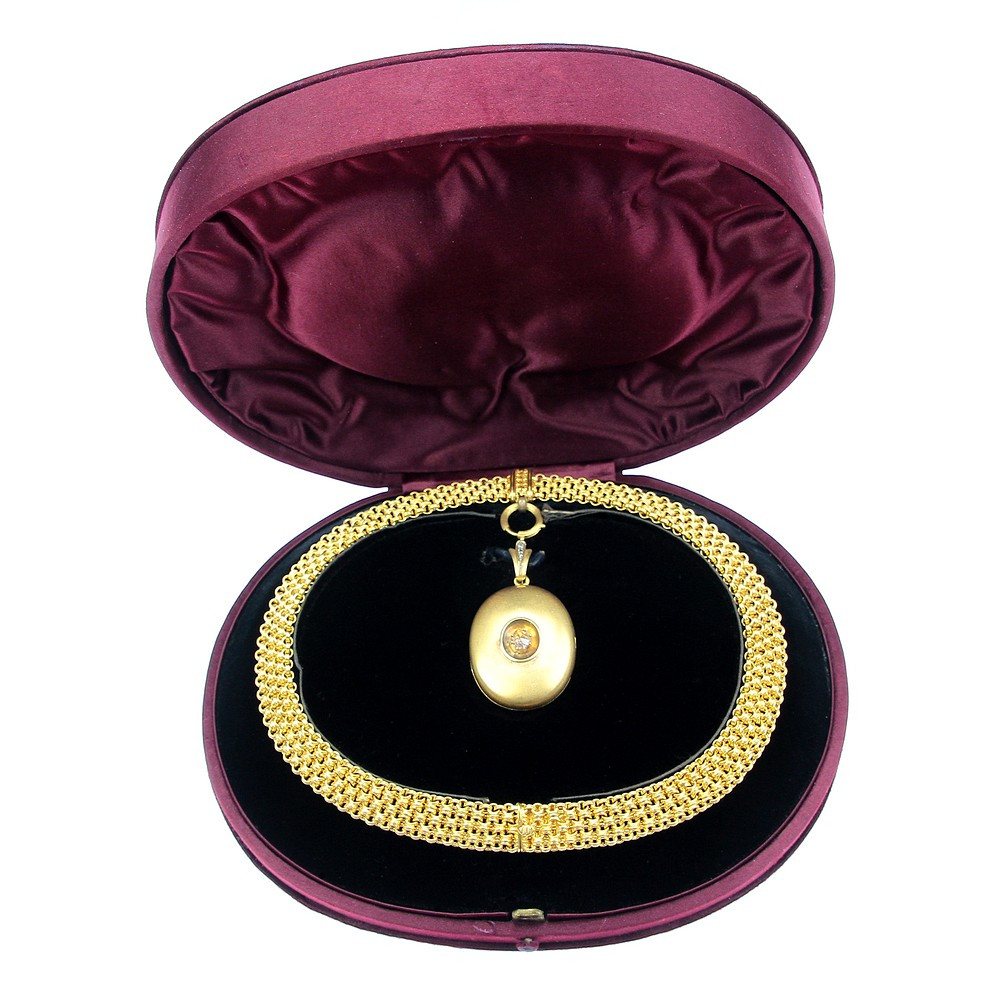Zlatý náhrdelník s medailonem v etuji - 70. - 80. léta 19. století