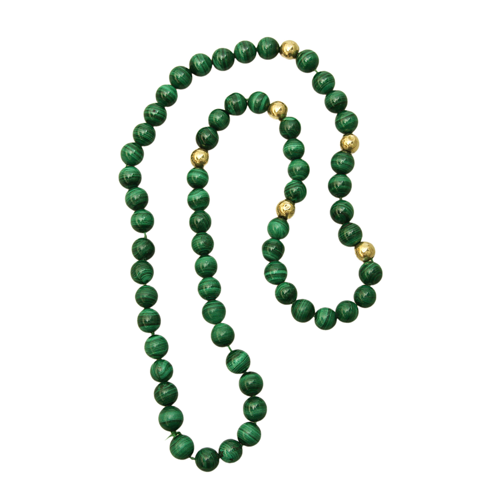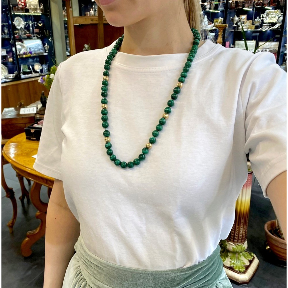 Náhrdelník osazený přírodním lapisem lazuli kabošonového brusu. Vyrobeno ze žlutého 18karátového zlata. Zapínání na karabinu. Jedná se o italskou práci z 2. poloviny 20. století.