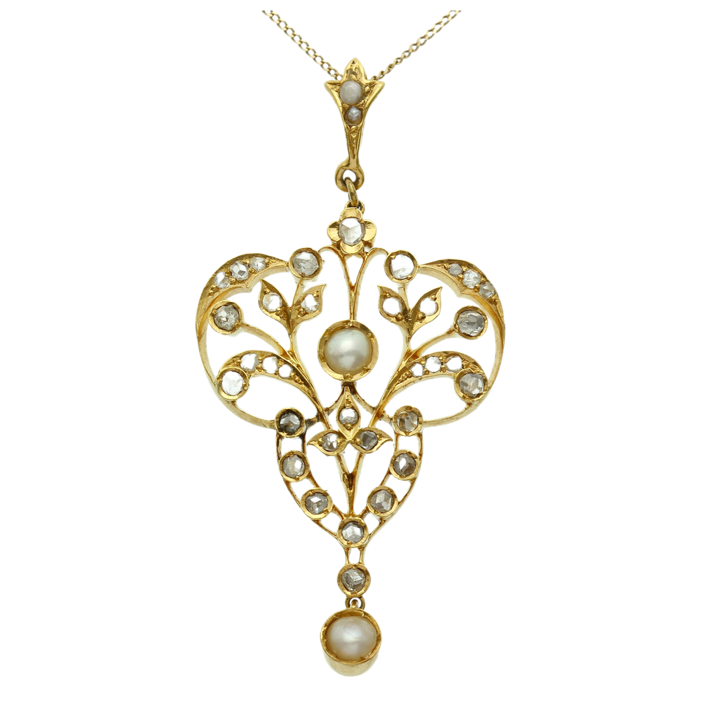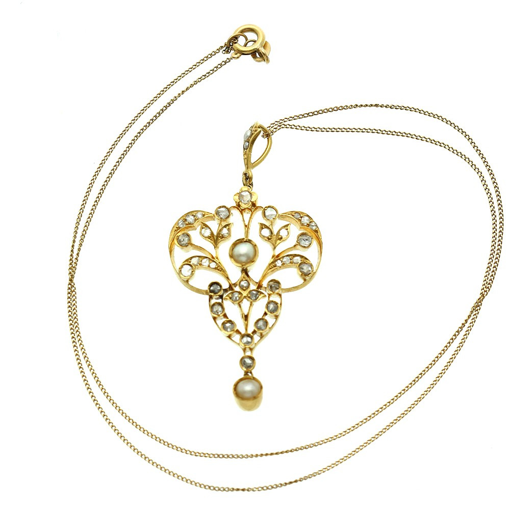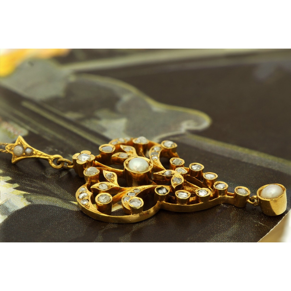 Secesní zlatý náhrdelník s diamanty a perličkami