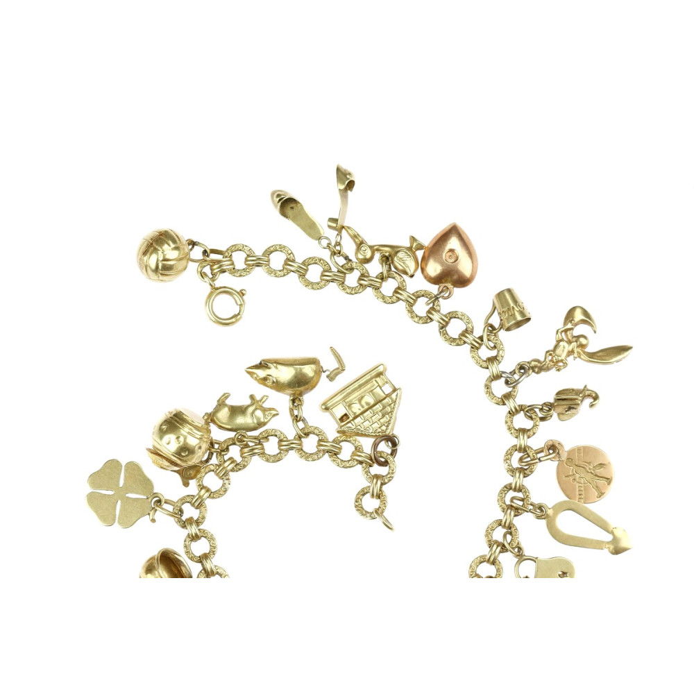 Prvorepublikový zlatý náramek s přívěsky - 20 cm